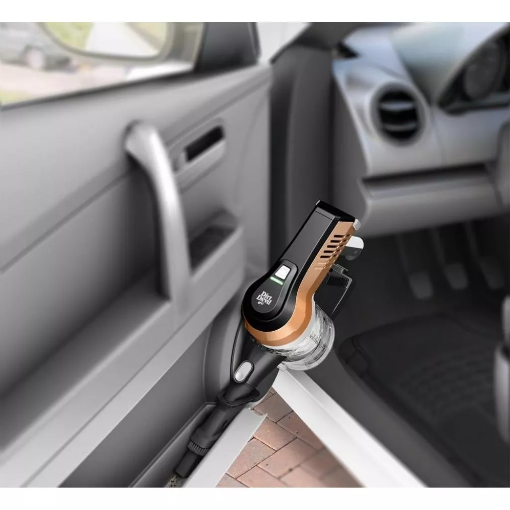 Аккумуляторный пылесос DIRT DEVIL Cavalier 21.2 V практичен при использовании на даче, где нет подвода электричества, в домашних условиях при недоступности или удаленности розетки от места чистки, и даже в автомобиле.