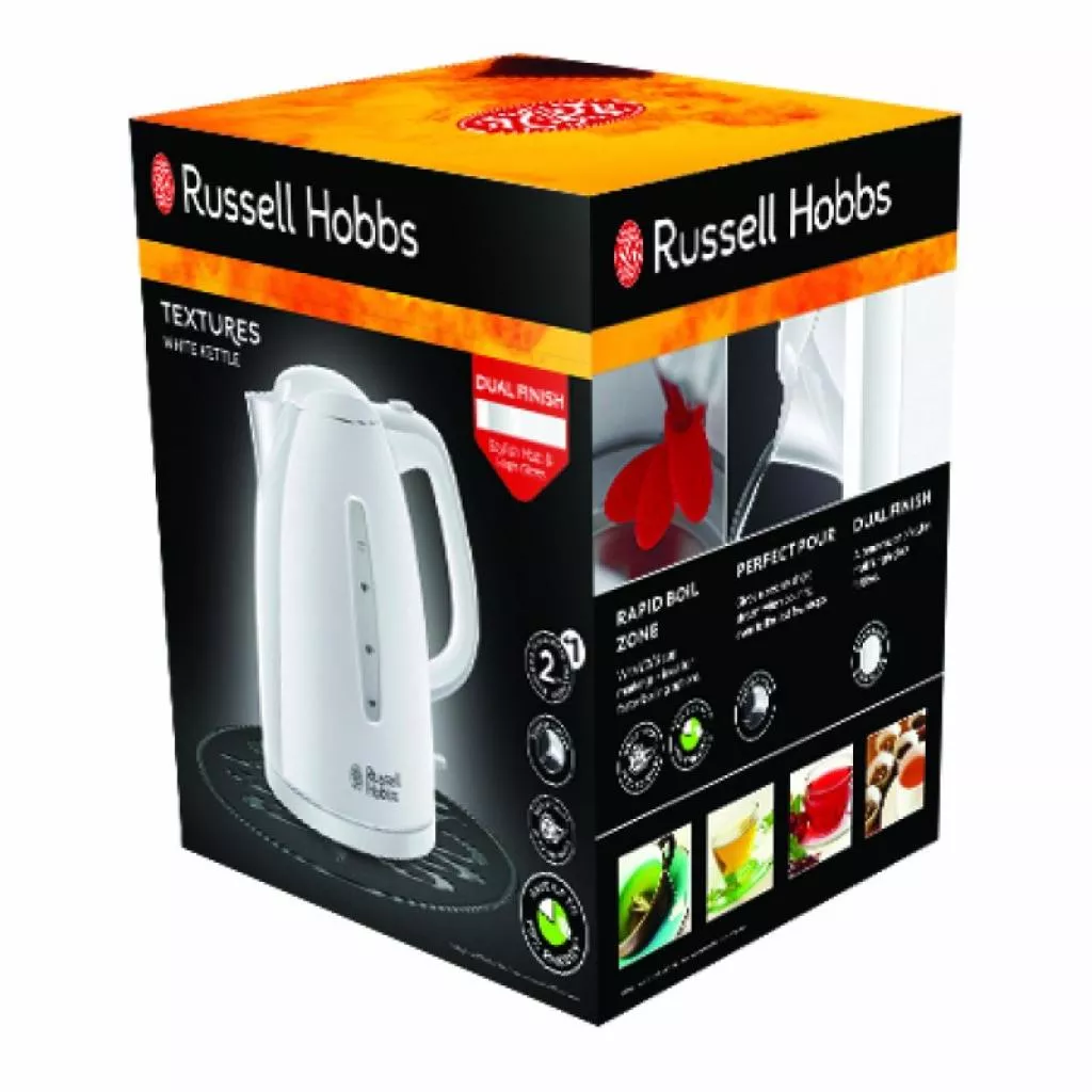Чайник Russell Hobbs Textures - практичный и стильный, в белом корпусе с уникальным комбинированным матово-глянцевым покрытием – займет достойное место на вашей кухне.