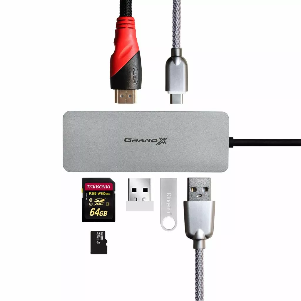 Концентратор Grand-X SG-512 с встроенным картридером станет надежным помощником для тех, кому не хватает USB портов на ноутбуке, или порты расположены не удобно. Встроенный картридер позволит работать с картами памяти не используя дополнительных устройств, а наличие портов HDMI и TypeC дает возможность поключить внешний монитор, камеру, планшет и смартфон, без использования дополнительных переходников.
