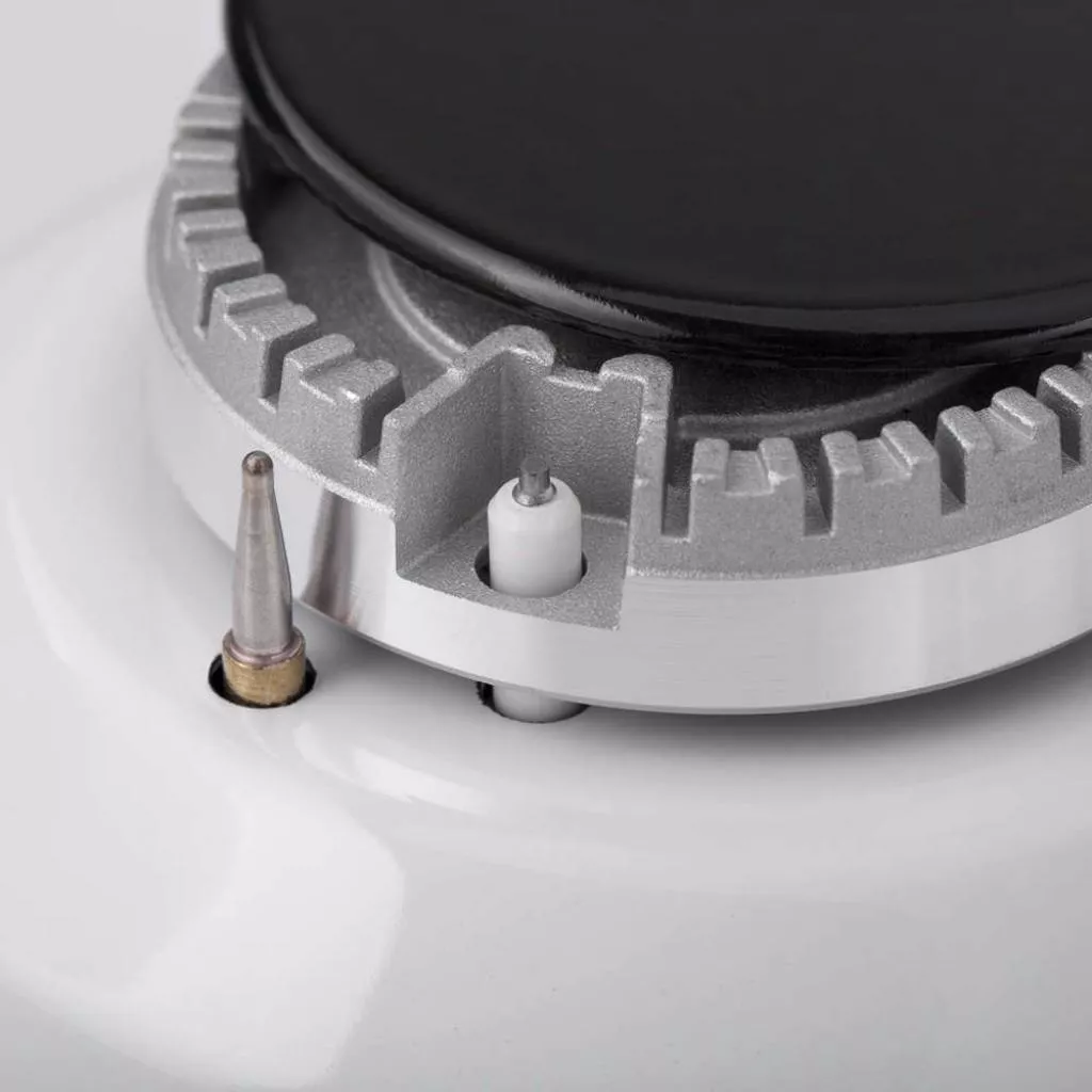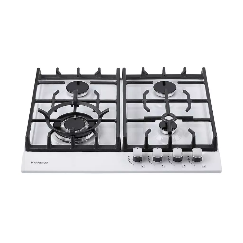 Газовая варочная поверхность PYRAMIDA PFE 643 WHITE LUXE (PFE 643) практична, удобна и неприхотлива в уходе. Ее поверхность покрыта глянцевой черной эмалью, на ней не будут видны ни следы от пальцев, ни разводы от моющих средств. По практичности эмаль значительно превосходит нержавеющую сталь и стекло. Особенно хорошо эта модель будет смотреться в современном интерьере в тандеме с черным духовым шкафом. Модель оснащена чугунными решетками, но смотрятся они легкими и даже ажурными. В то же время этот материал очень прочен и надежен.