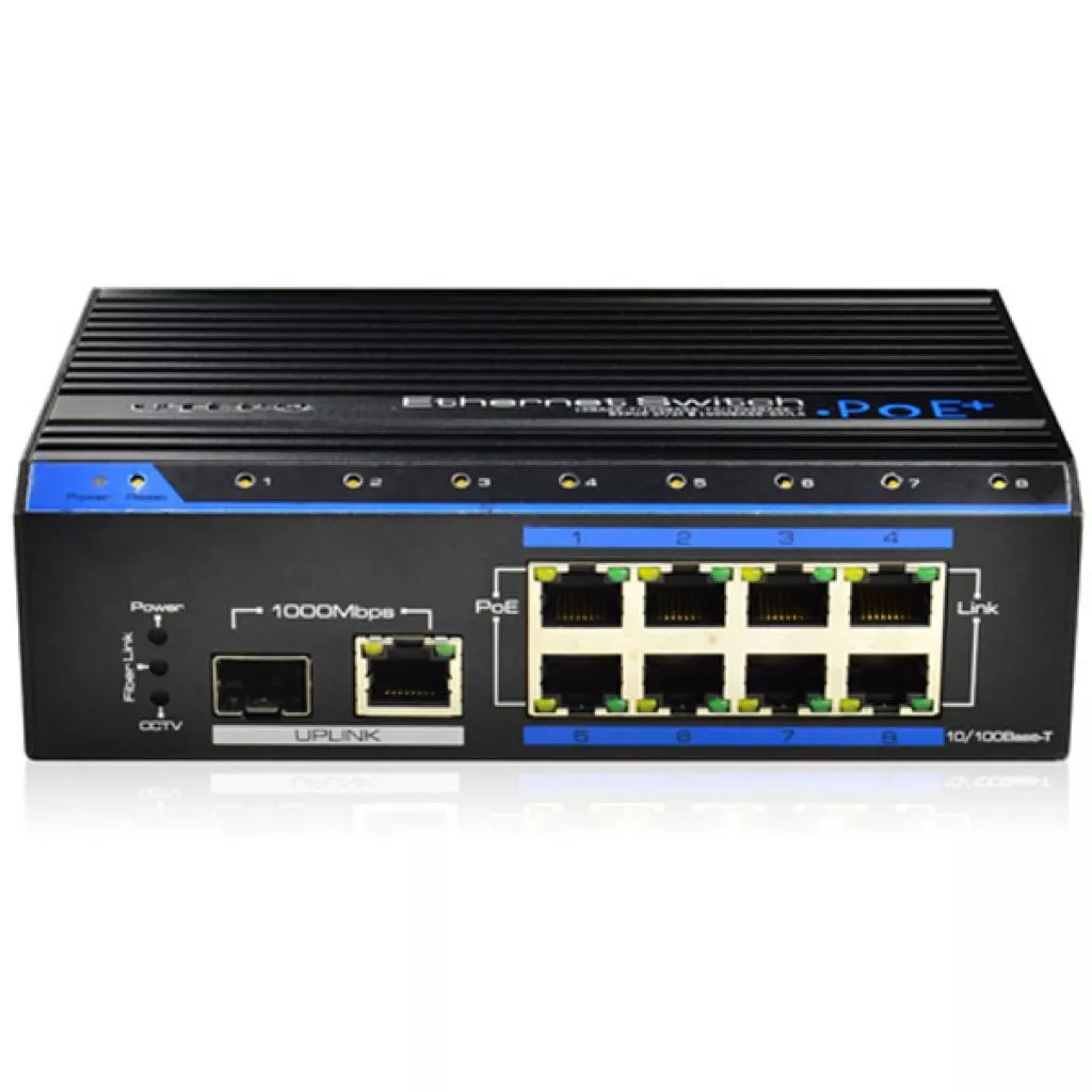 — коммутатор индустриальный, неуправляемый, имеет 4 порта High-PoE, 1 порт Gigabit TP/SFP.
