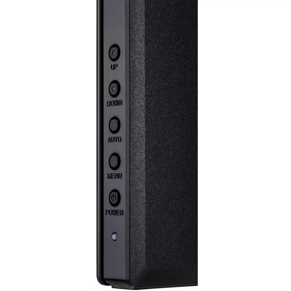 Дизайн изделия современный и универсальный, выполненный в черном цвете. Угол наклона монитора можно менять под собственные нужды и предпочтения. Благодаря имеющемуся креплению VESA, его можно подвешивать на стену, сможет значительно сэкономить пространство в комнате. Но есть и устойчивая подставка, которая позволит разместить устройство на столе.
