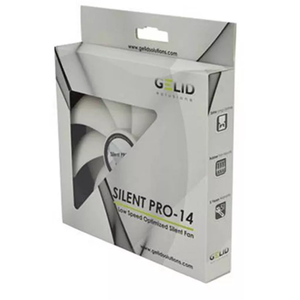 Вентилятор Silent Pro 14 разработан специально для пользователей-профессионалов. Благодаря использованию новой интеллектуальной системы ШИМ-контроля GELID PWM, вентилятор работает в расширенном диапазоне скоростей 450 – 1500 об/мин, а улучшенная схема управления PWM IC блокирует возникновение электромеханических шумов при вращении вентилятора, известных как треск мотора. Посадочное место вентилятора Silent Pro 14 соответствует габаритам вентиляторов 120 мм, поэтому он может быть установлен в большинстве компьютерных корпусов без применения переходников.