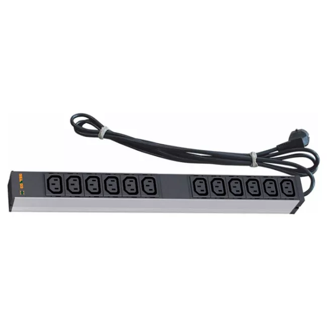 Входная сила тока: 10 А. Входное напряжение: 220 В. Количество розеток IEC 320 C13: 12. Кабель питания: встроенный. Материал корпуса: алюминий. Монтаж в стойку: 1U. Тип монтажа в стойку: горизонтальный. Ширина стойки: 19". Длина кабеля питания: 3 м