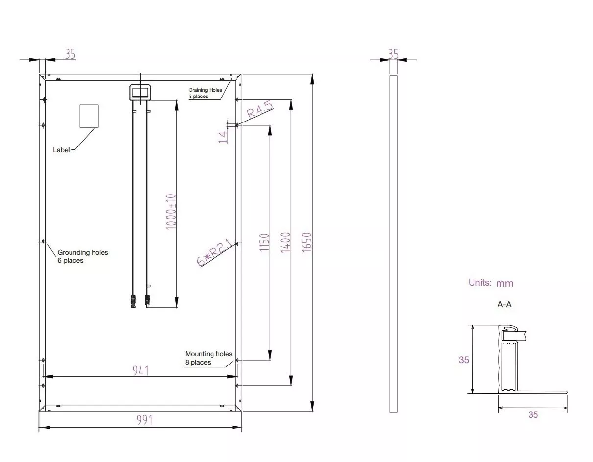 Поликристаллическая панель состоит из 60 фотоэлементов с кремниевой структурой. Так же в комплекте находятся 5 шин для пропускания тока, каждая из которых использует технологию 5ВВ. Корпус прибора изготовлен из алюминия, обладающего коррозиестойкими свойствами.