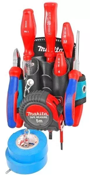 Держатель Makita P-71881 предназначен для комфортной работы электротехника. Материал держателя - полиэстер. Для удобной организации работы, есть крепления для расположения на поясе. Органайзер для инструмента очень компактный 155x160x50.