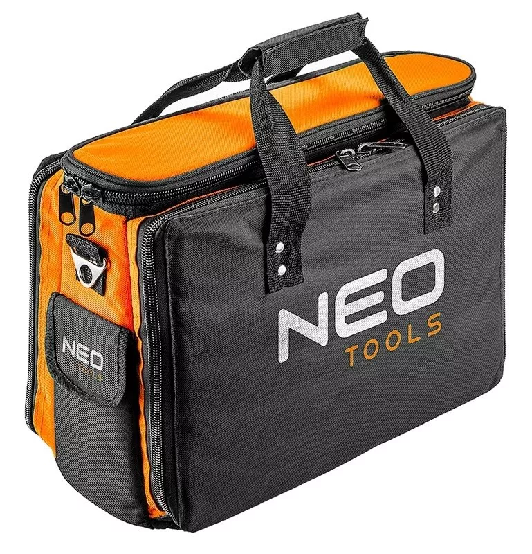 Кофр для инструмента NEO (арт. 84-308) из полиэстера 600 D, гарантирующего прочность кофра на долгие годы. Дно кофра упрочнено стойками, защищающими содержимое во время работы в тяжелых условиях. Кофр с крепкой ручкой и плечевым ремнем. Основным преимуществом кофра является большое количество карманов - 2 наружных и 17 внутренних, предназначенных, в основном, для ручного инструмента, что облегчает его транспорт и хранение. Бренд NEO оправдывает ожидания профессионалов.
