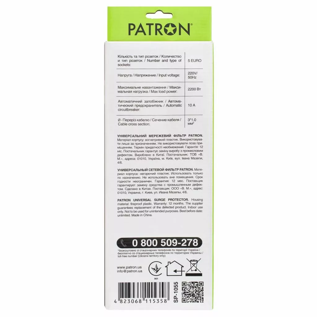 Сетевой фильтр Patron предназначен для подключения широкого спектра бытовой и компьютерной техники. Фильтр имеет универсальные розетки типа "евро" с заземлением и защищает электронную технику от короткого замыкания, перепадов напряжения и импульсных помех.