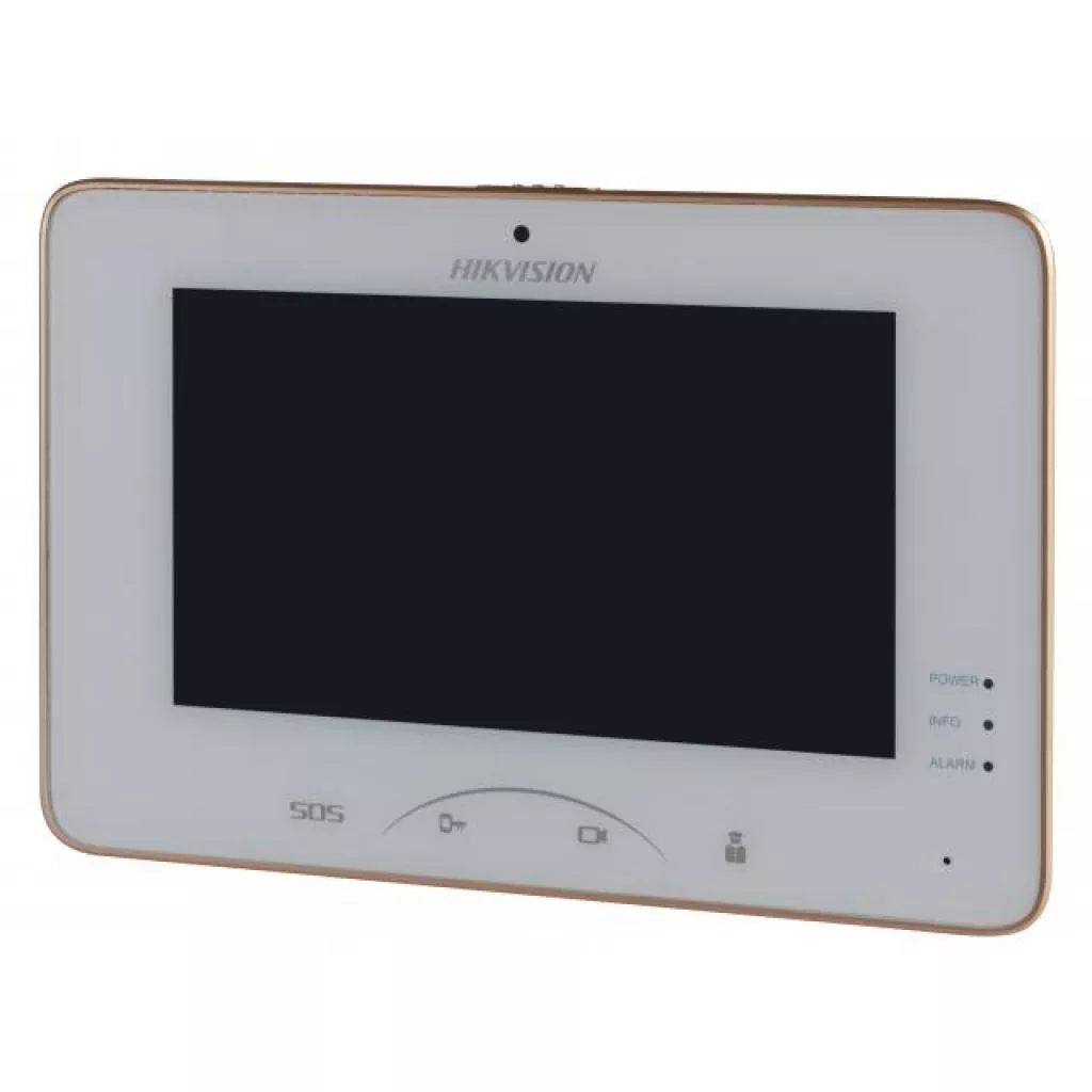 IP видеодомофон Hikvision DS-KH8301-WT оснащен цветным 7-дюймовым сенсорным дисплеем с разрешением 1024 х 600. Также модель поставляется с встроенной видеокамерой с CMOS-сенсором 0.3 Мп (640 х 480).