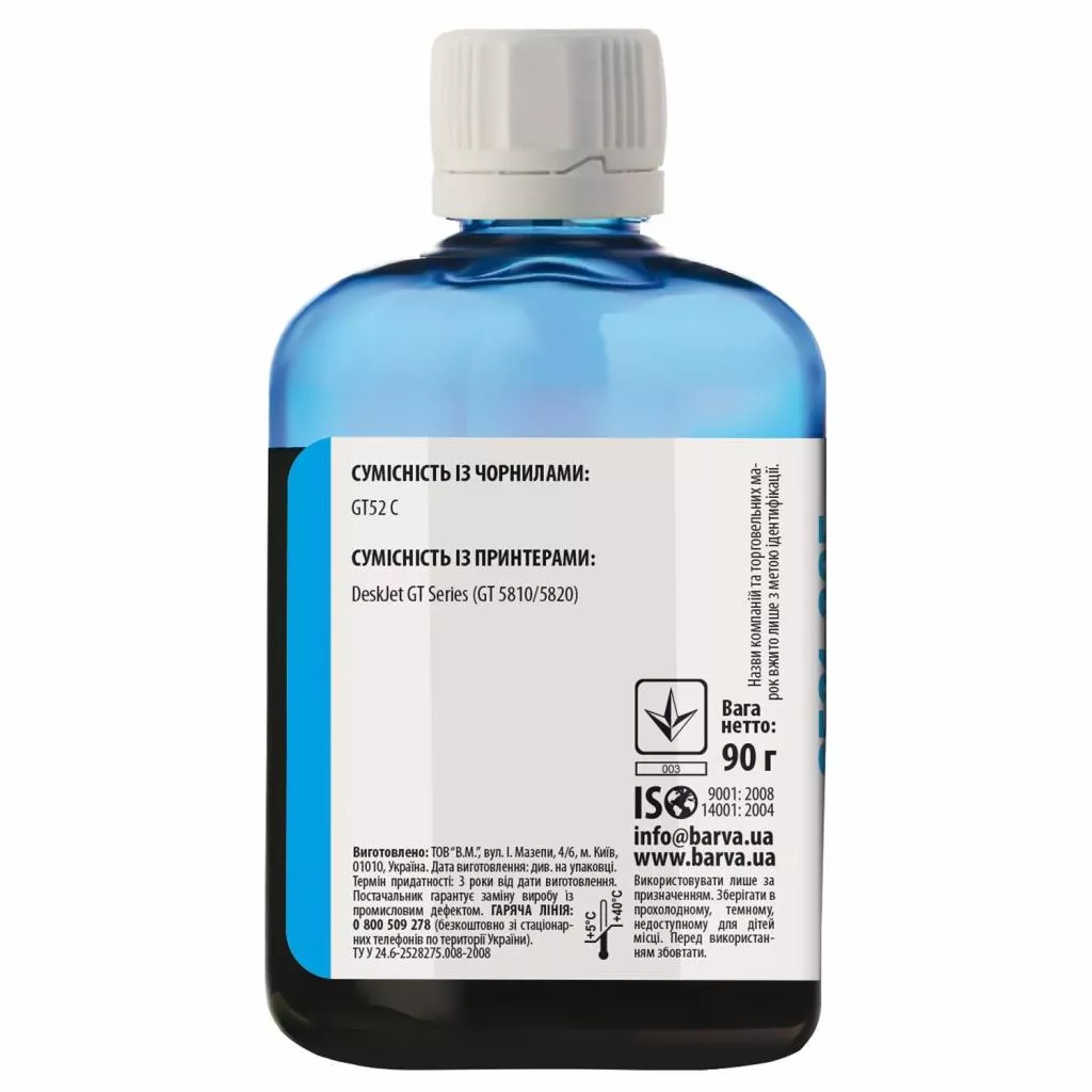Чернила BARVA HP DJ GT 5810/5820, 90г Cyan (GT52-520)