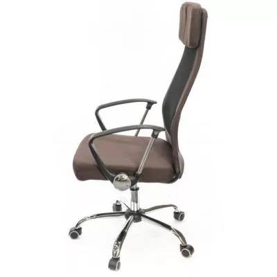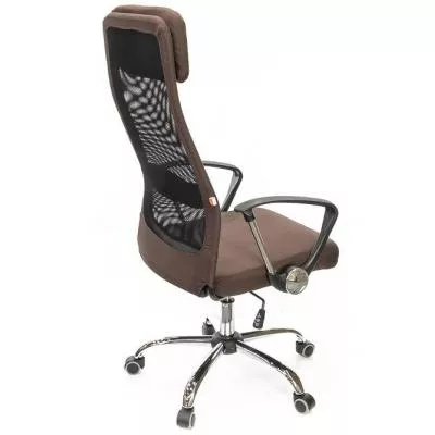 Подлокотники. У данной модели стильные комбинированные подлокотники из черного пластика и металлической трубы. Поверхность пластика текстурированный, благодаря чему руки не соскальзывают в процессе работы. Металлическая вставка гармонирует с хромированной крестовиной, создавая единый неповторимый ансамбль. Высота подлокотников в нижнем положении сидения кресла имеет высоту, которая дает возможность задвинуть кресло под рабочий стол для освобождения окружающего пространства.