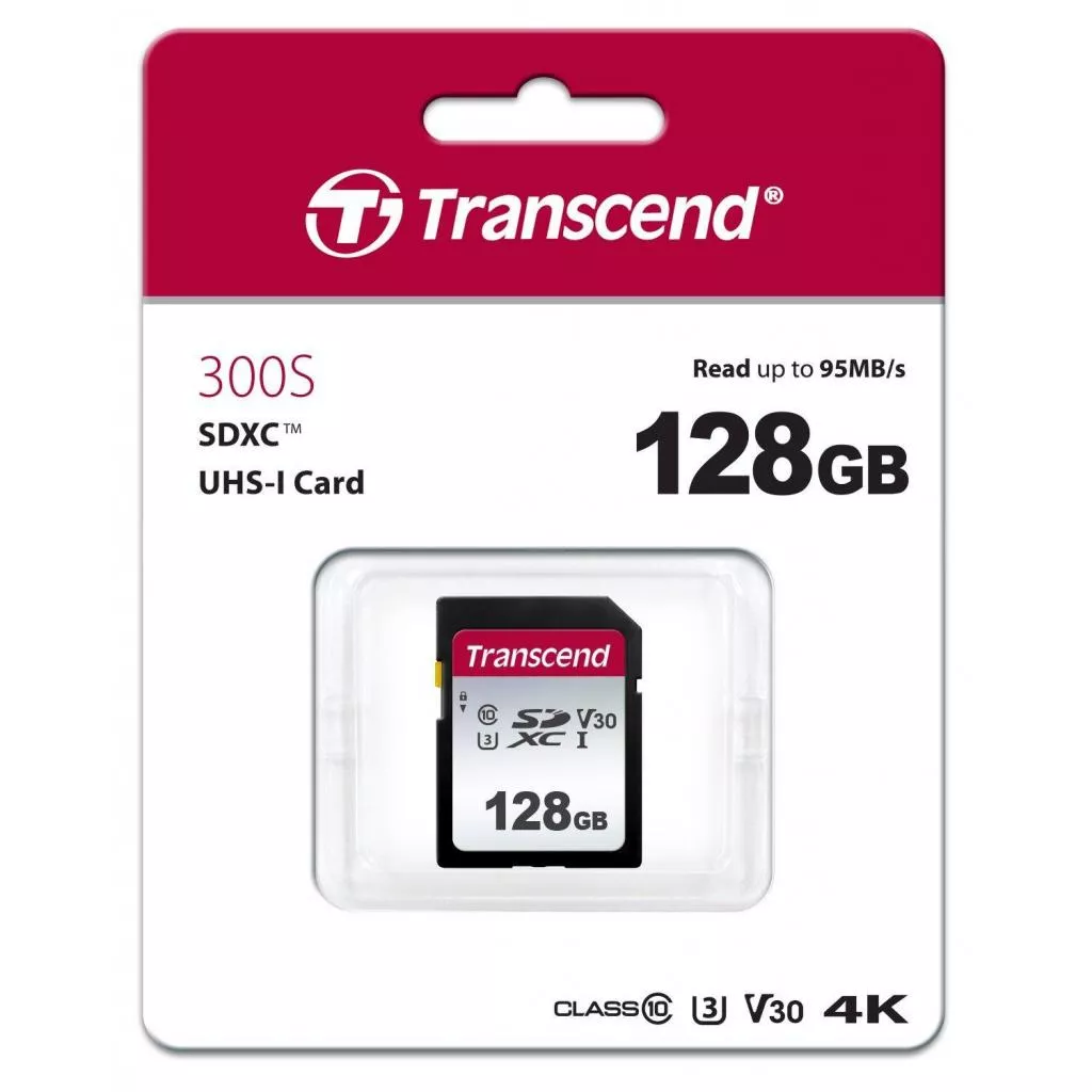 Карта памяти Transcend 128GB SDXC class 10 UHS-I U3 V30 (TS128GSDC300S) отличается высокой производительностью и позволяет полностью раскрыть потенциал цифровых фото- и видеокамер, поддерживающих стандарт UHS-I.