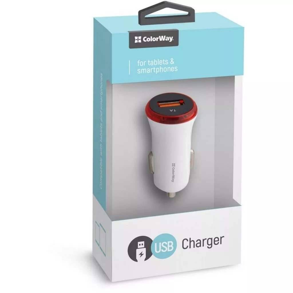 Зарядное устройство ColorWay 1USB 1A white (CW-CHA001-WT) станет незаменимым решением для дальних поездок на автомобиле. С его помощью можно заряжать широкий спектр современных устройств, оснащенных USB-интерфейсом. Среди них смартфоны, планшеты, электронные книги, видео-регистраторы и прочие девайсы. Зарядка оснащена яркой подсветкой для максимального удобства в использовании в условиях ограниченной освещенности.Автомобильное зарядное — зарядные устройства, предназначенные для использования в автомобиле; включаются в гнездо прикуривателя или в автомобильную розетку той же формы.