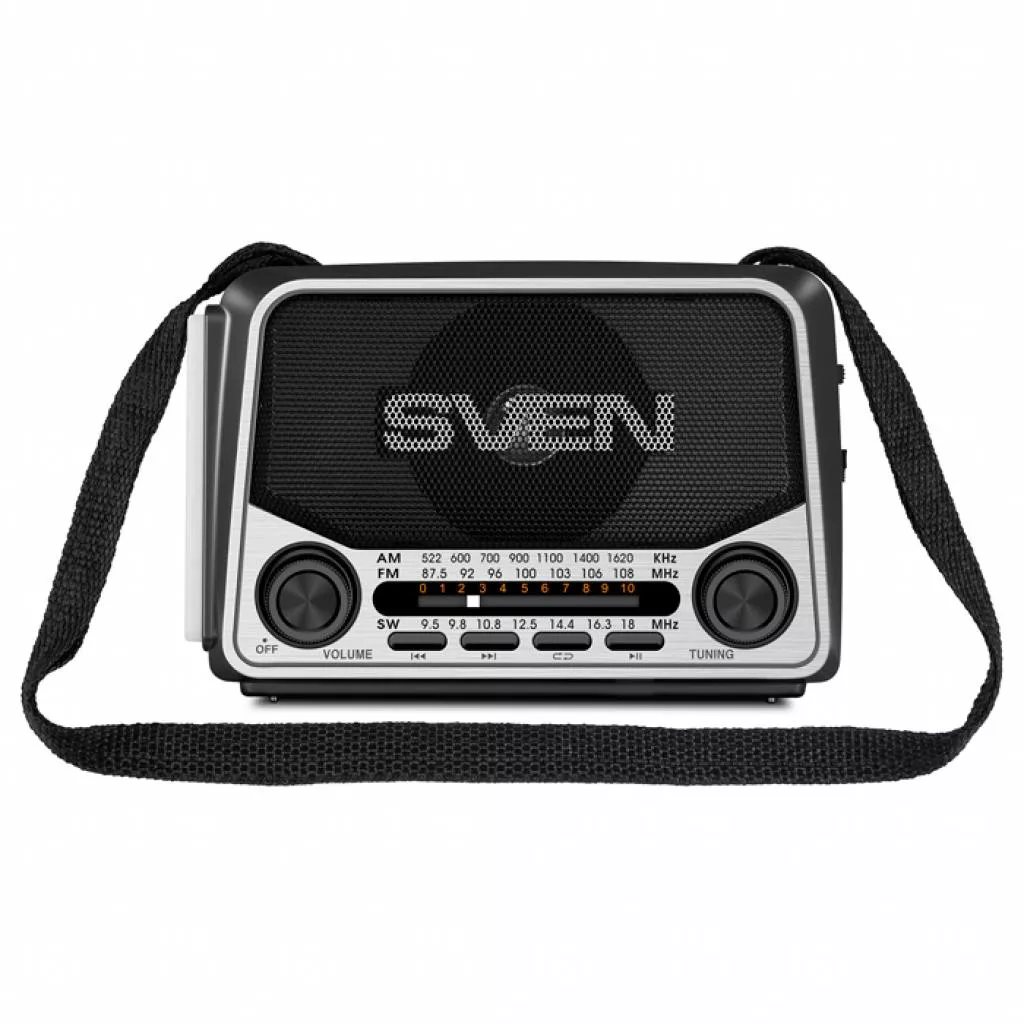 Купить портативный радиоприемник SVEN вы можете в любом крупном магазине вашего города. Особенности: встроенное FM/AM/SW радио. Воспроизведение музыки с USB flash и microSD карт памяти. Телескопическая поворотная антенна. Встроенная батарея.