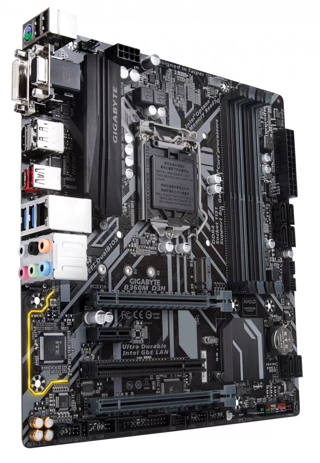 - Intel B360 Ultra Durable motherboard with USB 3.1 Gen2 Type-A, Intel GbE LAN with 25KV protection, PCIe Gen3 x4 M.2, 7 colors RGB LED strips support, Anti-Sulfur Resistor, Smart Fan5, DualBIOS, CEC 2019 ready