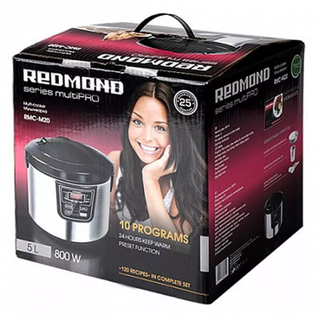 Mультиварка Redmond RMC-M20 — это экономия пространства, денег и времени. Один компактный прибор способен заменить целый ряд кухонной техники от пароварки до электроплиты. Больше не будет потребности покупать дополнительные устройства, часть из которых обычно используется лишь по «особому» случаю. Обогатился ряд автоматических программ: теперь в «чудо-кастрюле» можно приготовить домашний йогурт или поставить подниматься (расстоять) дрожжевое тесто. Функции отложенного старта и автоподогрева блюда делают использование мультиварки еще удобнее. Чтобы готовить здоровые и полноценные завтрак, обед и ужин для всей семьи, не обязательно постоянно «дежурить» на кухне!