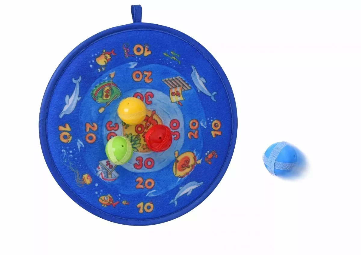 Игра «Метательные мячики» - это, своего рода, разновидность дартсу. Однако чтобы обезопасить вашего малыша, для метания здесь используются легкие безопасные пластиковые шарики, а не острые опасные стрелы. Диаметр мишени составляет 25 см. Набор предназначен для детей от трех лет. Все элементы изготовлены из безвредных, нетоксичных материалов - пластика и текстиля. Производитель - немецкий бренд Goki.