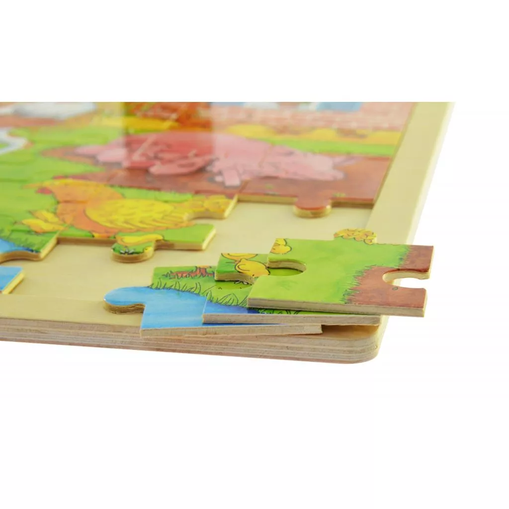Пазл «Жизнь на ферме» увлечет детей интересными сюжетами. Многочисленные сцены из жизни фермы насыщенные разной информацией. Поэтому составление такого пазла буду развивать логическое и аналитическое мышление, понимание причинно-следственных связей и общего интеллекта. Все элементы пазла выполнены из качественных материалов: дерева и краски на водной основе. Пазл немецкого производителя игрушек goki состоит из 48 элементов и является адаптированным для детей от 3-х лет.