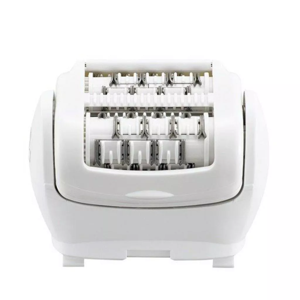 Головка может изменять угол наклона до 90°, оставаясь плотно прижатой к коже. Она идеально повторяет любые контуры тела, не оставляя пропущенных волосков, а также позволяет без особого труда эпилировать труднодоступные места.