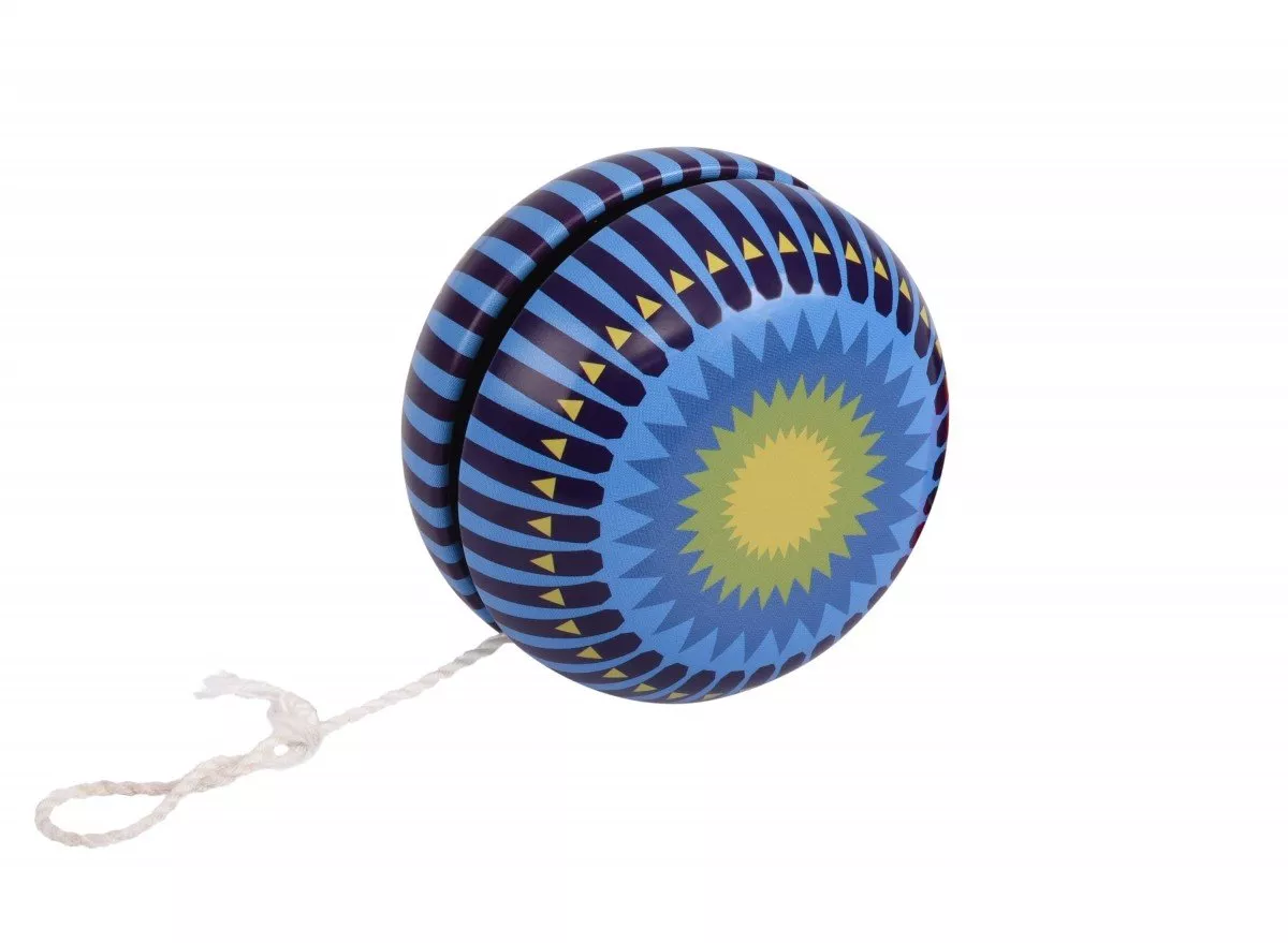 Йойо - известная на весь мир игрушка, которая не перестает быть популярной и любимой среди детей и взрослых. Игрушка с надежным металлическим корпусом, поэтому выдержит даже самую активную игру. Яркий стильный орнамент на пластинках понравится всем. Конструкция йойо - это два идентичны диски, соединенные с помощью оси, к которой прикриплена нить с петельками для пальцев. Йойо от немецкого производителя игрушек Goki способствует развитию ловкости, моторики, координации движений малыша.