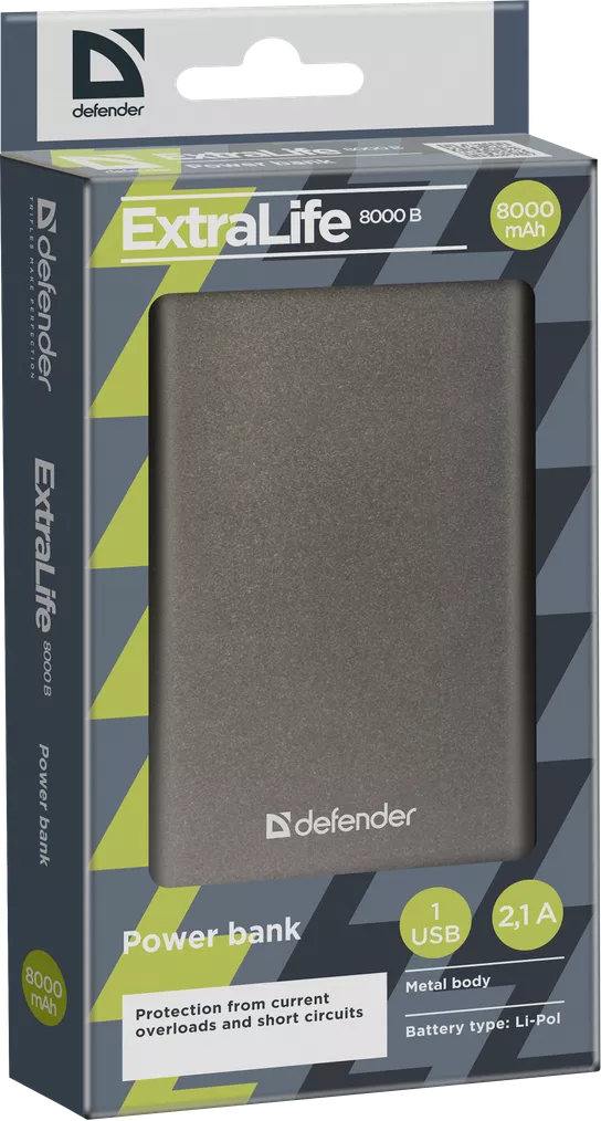 Ёмкость - 8000 mAh, электрохимическая система - Li-pol, источник заряда встроенной батареи - USB, интерфейсы подключения (выход) - 1 x USB, выходной ток - 2.1 A, Емкость 29.6 Вт·ч, Цвет - черный