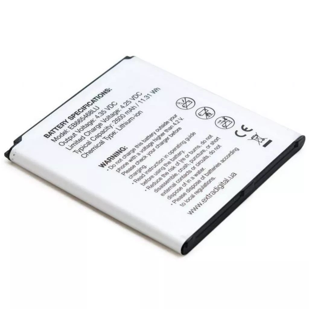 Аккумуляторная батарея EXTRADIGITAL Samsung Galaxy Grand 2 Duos G7102 (2600 mAh, EB665468LU) (BMS6417) - компактная, стабильная и очень надежная, она поможет вам оставаться всегда на связи в командировках и загородных поездках.
