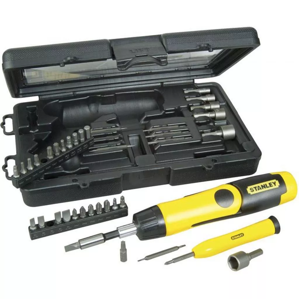 Тип - отвертка с комплектом бит/стержней, вид - с храповым механизмом, со сменными насадками, вид наконечника отвертки/бит - плоский (SL), крестообразный (Phillips/PH), звездообразный (Torx/T), крестообразный (PZ), форма рукоятки - стандартная.