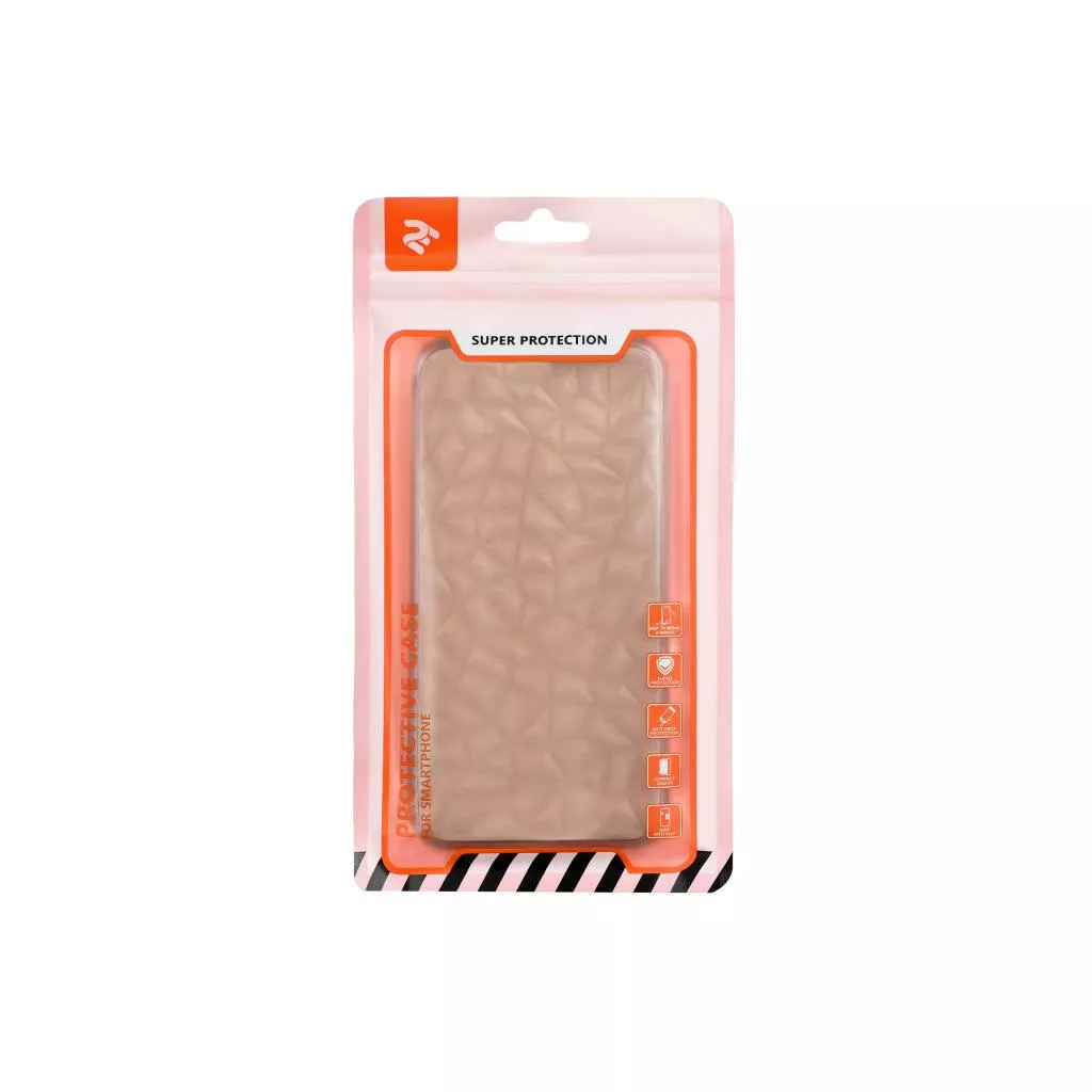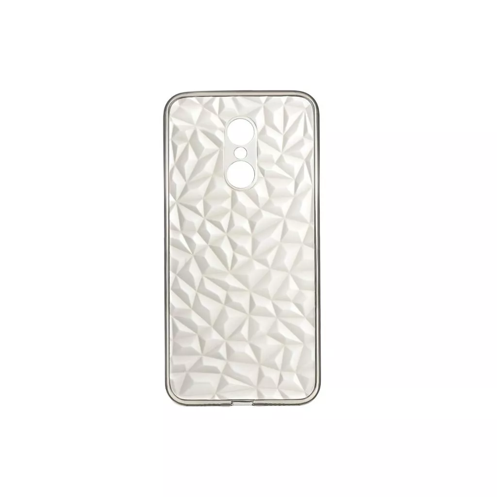 Прозрачный чехол с серым оттенком из прочного и гибкого материала TPU. Внешняя сторона гладкая, а геометрический 3D-рисунок внутренней части имитирует огранку драгоценных камней. Толщина - 1,3 мм. Чехол поставляется в ZIP-пакете.