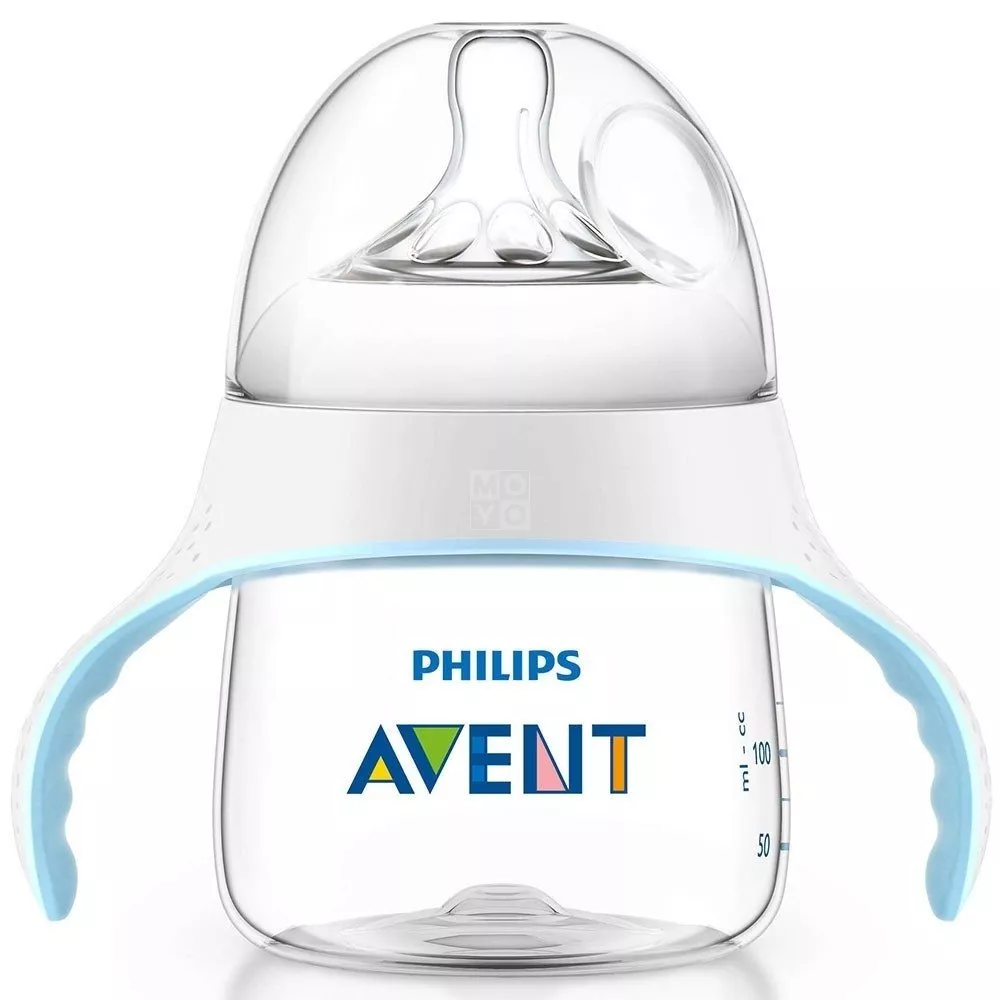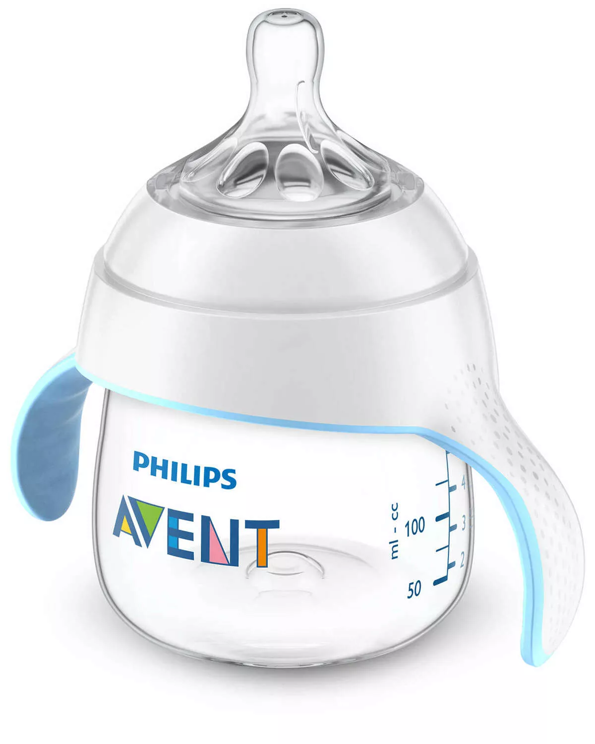 Тренировочный набор непроливайка Avent Natural с бутылочкой 150 мл предназначен для детей в возрасте от 4-х месяцев. В комплекте соска серии Naturals - средний поток. Разработан для того, чтобы помочь малышу перейти от бутылочек к первой чашки. Благодаря удобным ручкам бутылку легко держать, даже самым маленьким деткам. Сначала нужно использовать соску, а позже, заменить ее на мягкий носик для поения. Соска изготовлена из силикона, а бутылочка - из полипропилена (без содержания бисфенола-А). Новая чашка совместима с Philips Avent.