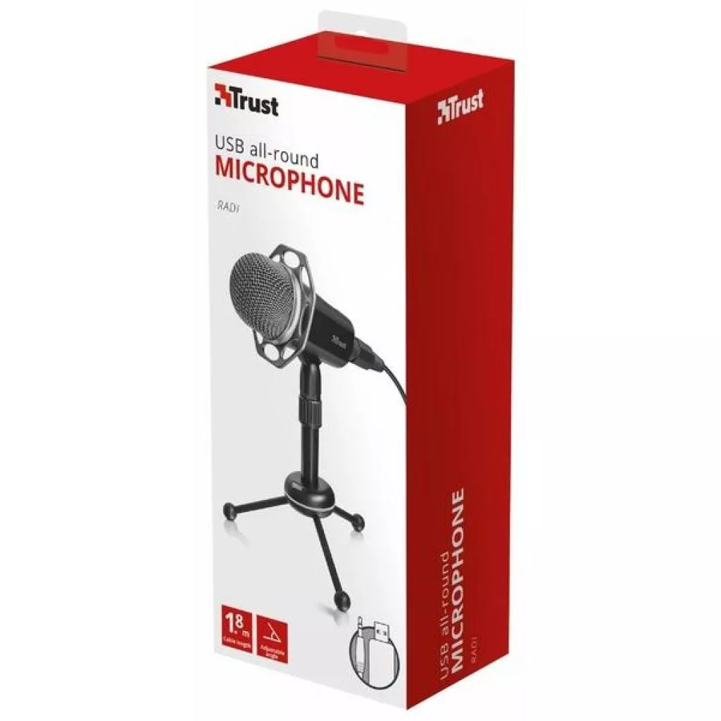 Микрофон Trust Radi USB All-round (21752) — высококачественный USB-микрофон студийного дизайна на трехногой подставке с разъемами USB и 3,5 мм.