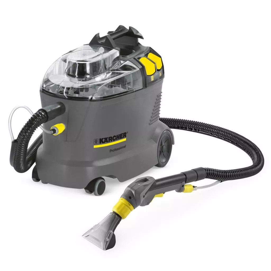 Puzzi 8/1 C завершает линейку пылесосов, в основе работы которых лежит принцип разбрызгивания моющего средства. Эту разбрызгивающую машину можно эффективно использовать для очистки обивки мебели или для удаления пятен на ковровом покрытии. Благодаря очень низкой остаточной влажности очищенные ковры и обивку можно вновь использовать через небольшой промежуток времени.
