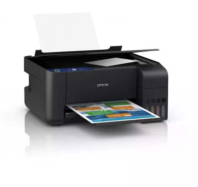 Epson L3101 — это МФУ 3-в-1 (принтер, сканер и копир) нового поколения с фронтальными емкостями для пополнения чернил, чернильными контейнерами со встроенным клапаном от случайного проливания и усовершенствованной системой заправки «Key Lock». Дополнительной отличительной особенностью данного МФУ является эксклюзивная панель управления, выполненная в синем цвете.