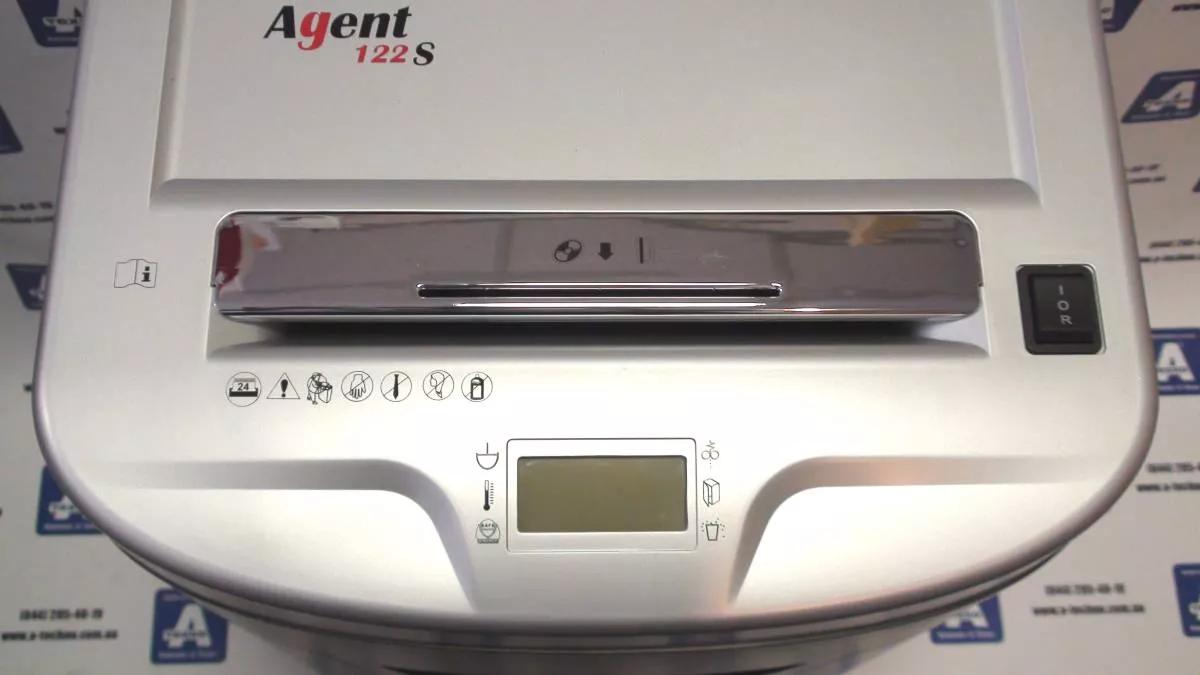 Шредер Agent 122 S (4,0). Класс уничтожителя Офисный. Тип резки Продольная. Размер фрагментов, мм 4. Уровень секретности DIN 66399 2. Уничтожает за один раз, листов 70 г/м² 25. Уничтожает за один раз, листов 80 г/м² 22. Скорость, мм/сек 55. Ширина реза, мм 230. Уничтожение скоб, скрепок Да. Уничтожение пластиковых карточек Да. Уничтожение CD-дисков Да. Уничтожение дискет Нет. Объем корзины, литров 34. Режим "работы" / "отдыхает", мин 20/30. Реверс Автоматический. Автостоп при переполненной корзине Да. Блокировка работы при открытой дверце Да. Индикатор переполненной корзины Да. Мощность, Вт 300. Напряжение, В 220. Вес, кг 18,3. Габариты, мм 390x305x645. Бренд AGENT