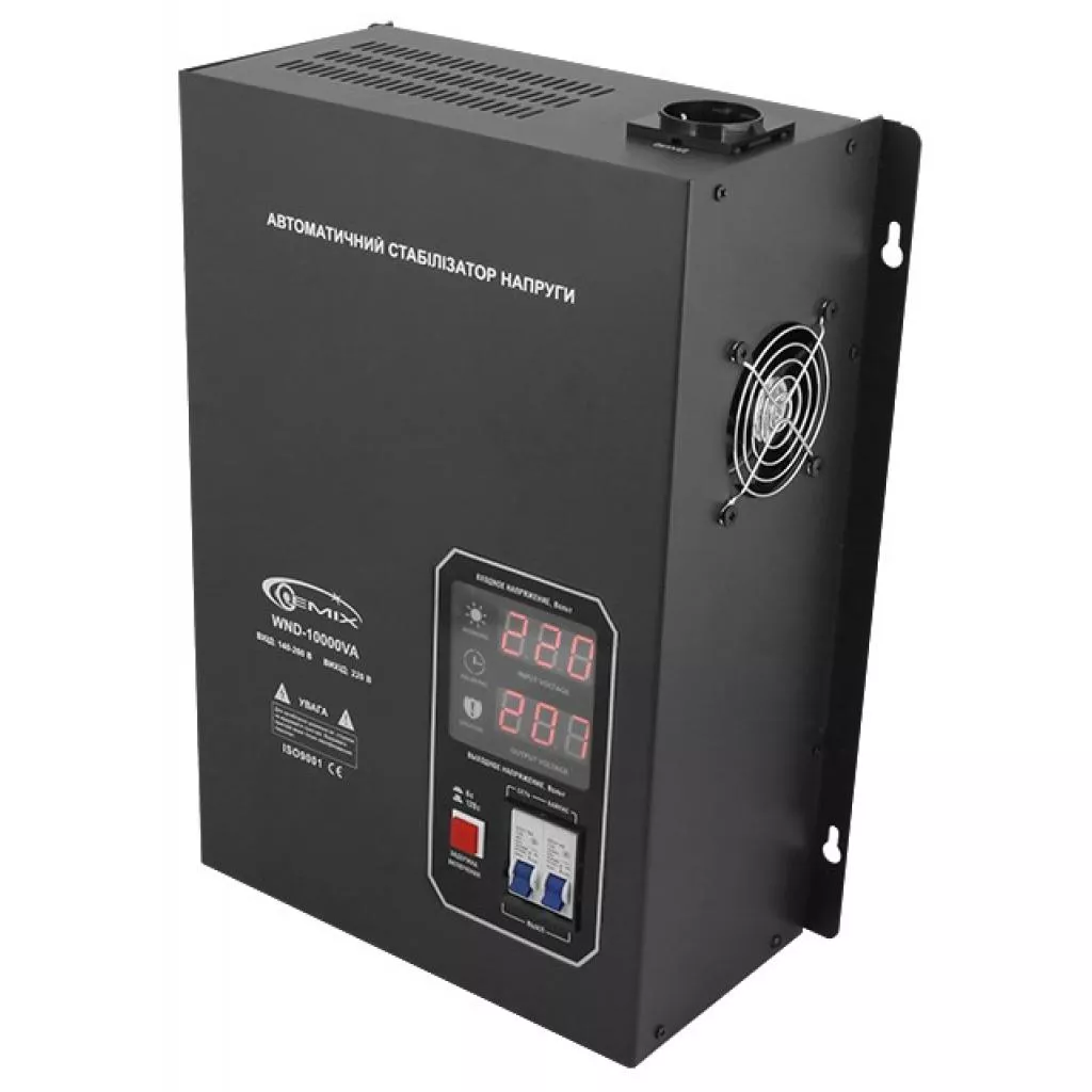 Стабилизатор с микропроцессорным управлением. Автоматический стабилизатор напряжения для квартиры или дома. Корпус выполнен из метала, крепиться на стену. Оборудован светодиодным дисплеем. Предназначен для защиты бытовых приборов от основных проблем с электропитанием.