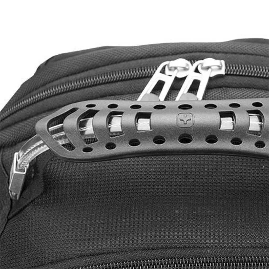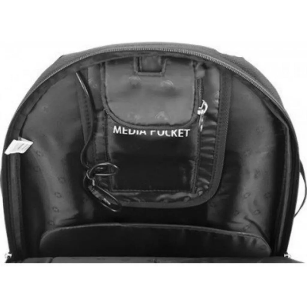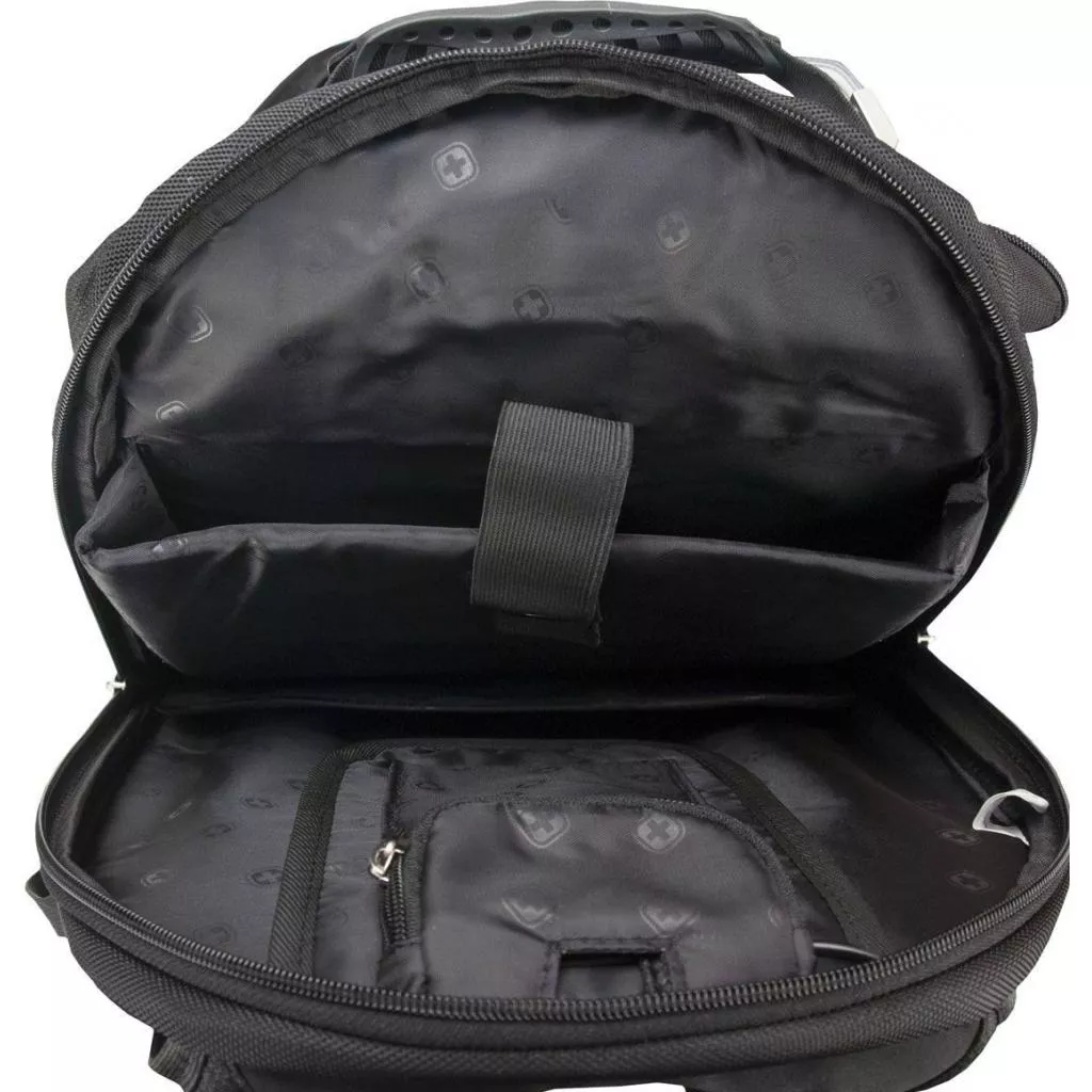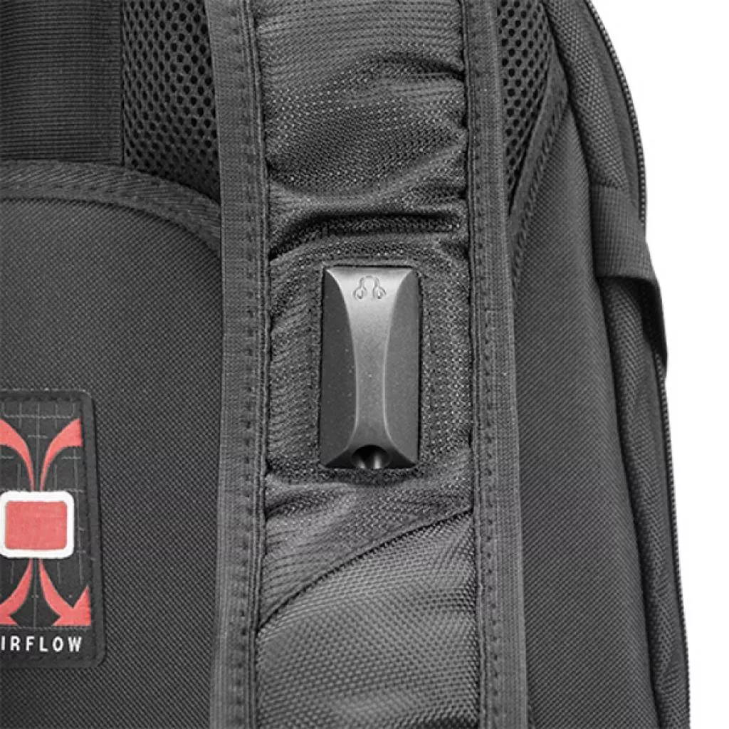 Внутри находятся специальные крепежи для корпуса ноутбука, которые дополнительно страхуют его от возможных перемещений внутри рюкзака.