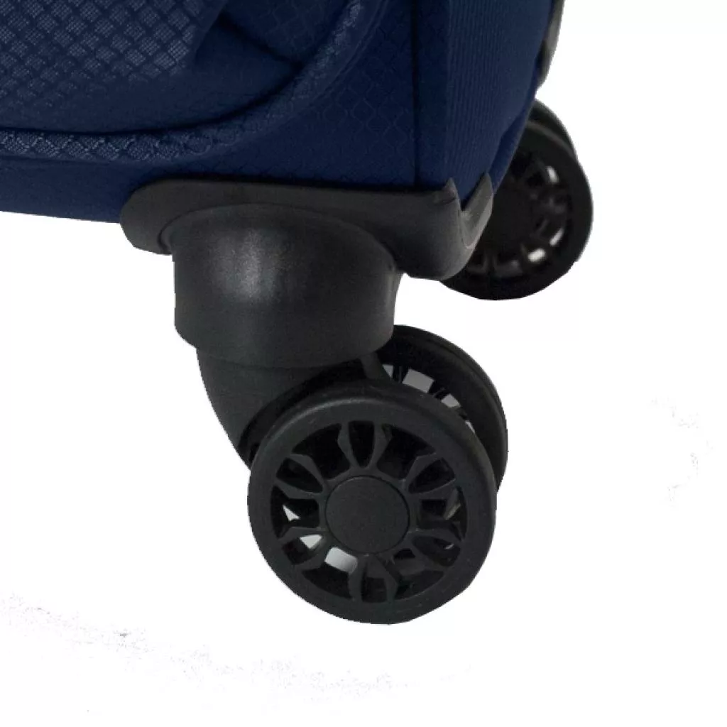Чемодан оснащен четырьмя спаренными роликовыми колесами из высокотемпературного термопластичного полиуретана (TPU). Материал обладает прочностью сравнимой с пластиком, гибкостью силикона, а также имеет повышенную устойчивость к перепадам температур. Отличительной особенностью колес из TPU материала является снижение шума до минимума при качении чемодана по неровной поверхности. Благодаря устойчивости к истиранию материал колес отличается длительным сроком эксплуатации.