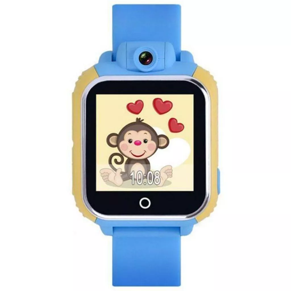 Смарт часы Q200 имеют прямоугольную форму с закругленными краями. Материал корпуса выполнен из прорезиненного пластика, боковые вставки из твердого пластика. Вверху находится 2МП камера (подробнее о камере – читайте дальше). Ремешок съемный, выполнены из прочного силикона, фиксируются на разные размеры запястья. В детских часах Q200 цветной сенсорный экран с IPS матрицей, диагональ 1,54 дюйма.