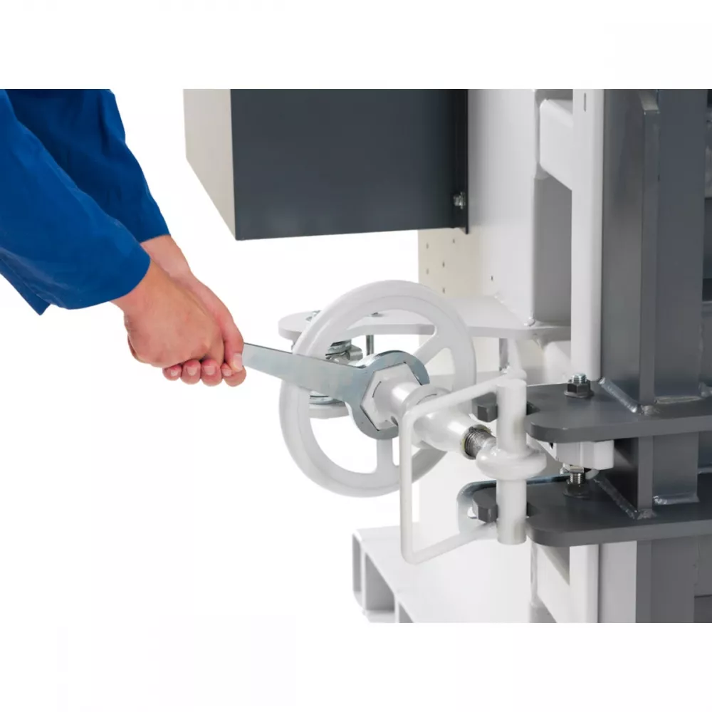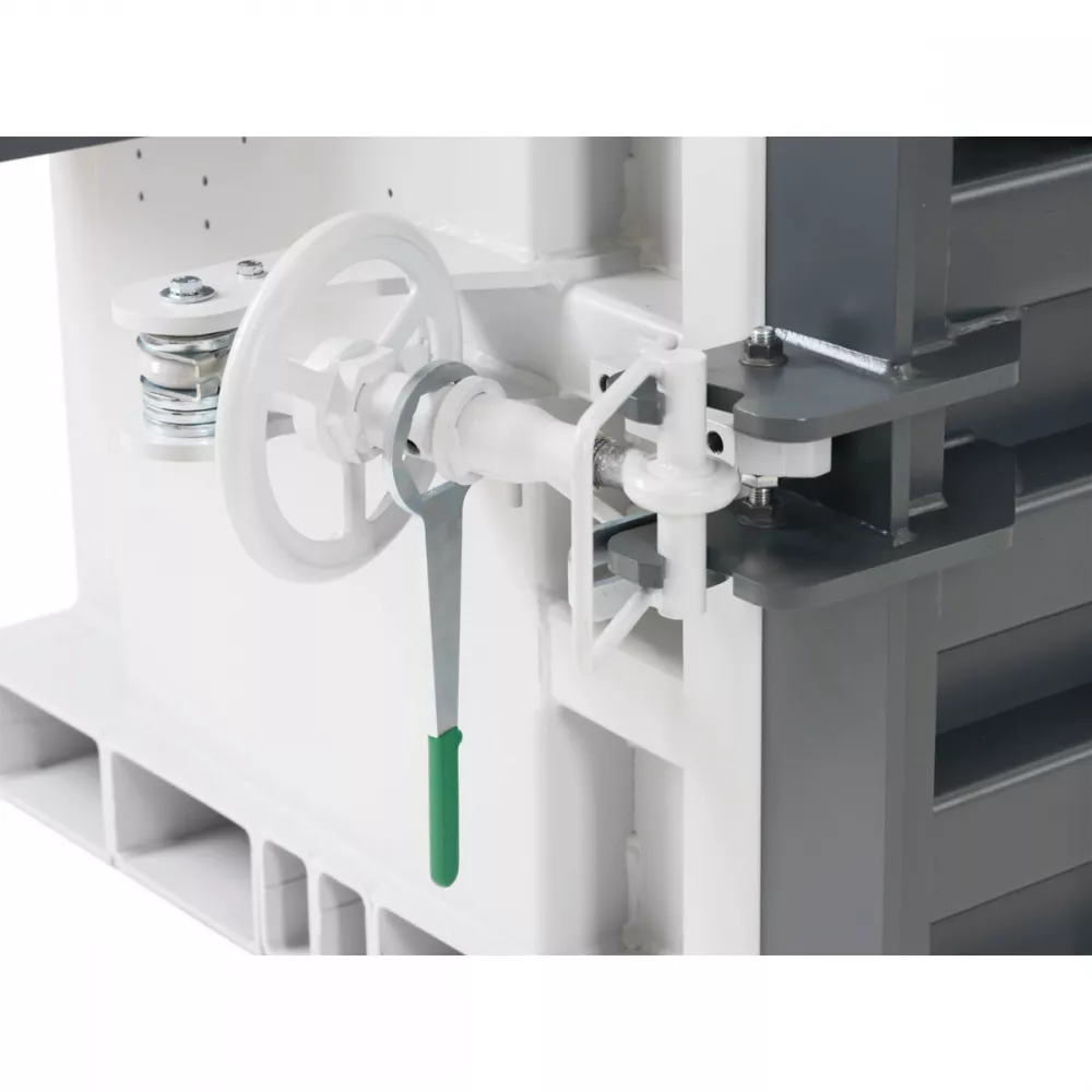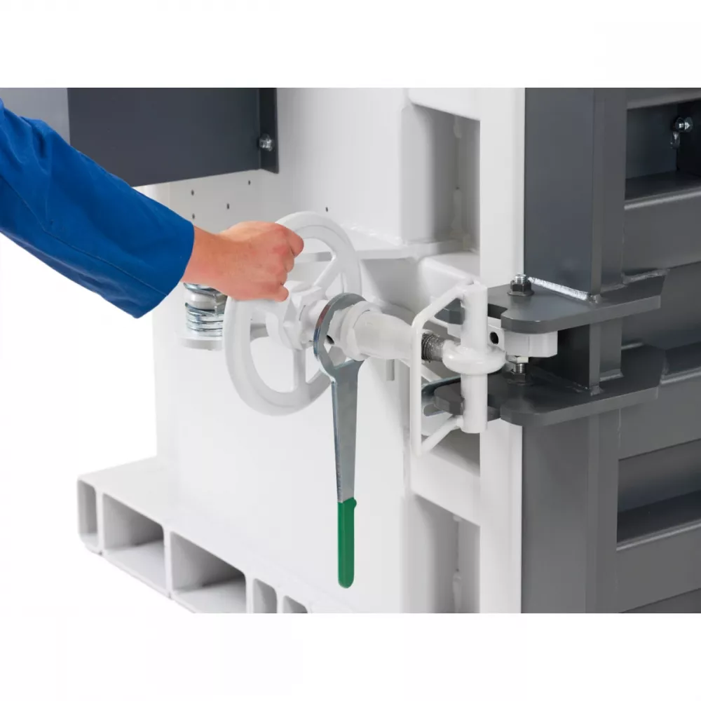 Самая мощная модель в линейке вертикальных прессов HSM обеспечивает максимальную плотность тюка. Обвязка: 4-мя полиэстровыми лентами. Фронтальная установка ленты • Фронтальная загрузка материала • Обычная дверь загрузки бункера (модификация "Eco"). • Автоматической удаление тюка • HSM TCS (TorsionControlSystem) предотвращает одностороннюю нагрузку во время прессования. Модификация "Plus" имеет скользящую вниз сдвижную дверцу открытия бункера, что облегчает работу и требует меньше рабочего пространства вокруг пресса. Модификация "MAX" кроме скользящей двери ещё имеет автоматическое гидравлическое запирающее устройство, что облегчает и ускоряет работу.