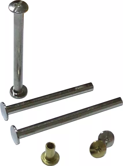 Металлические болты для переплета. Диаметр шляпки 9 мм. Позволяют скрепить блоки до 20 мм.