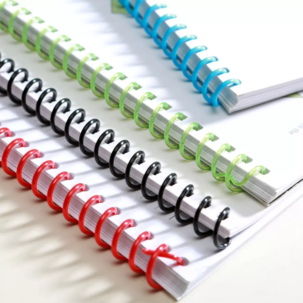 Пластиковая спираль формата А4, шаг 4:1, позволяет переплести материал толщиной до 6 мм (60 листов, 80 гр/м2).