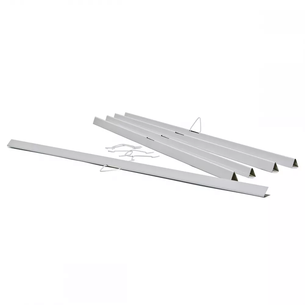 Металлические планки для календарей, плакатов, постеров. Верхняя планка с вешалкой. Для установки планок требуется обжимное устройство.