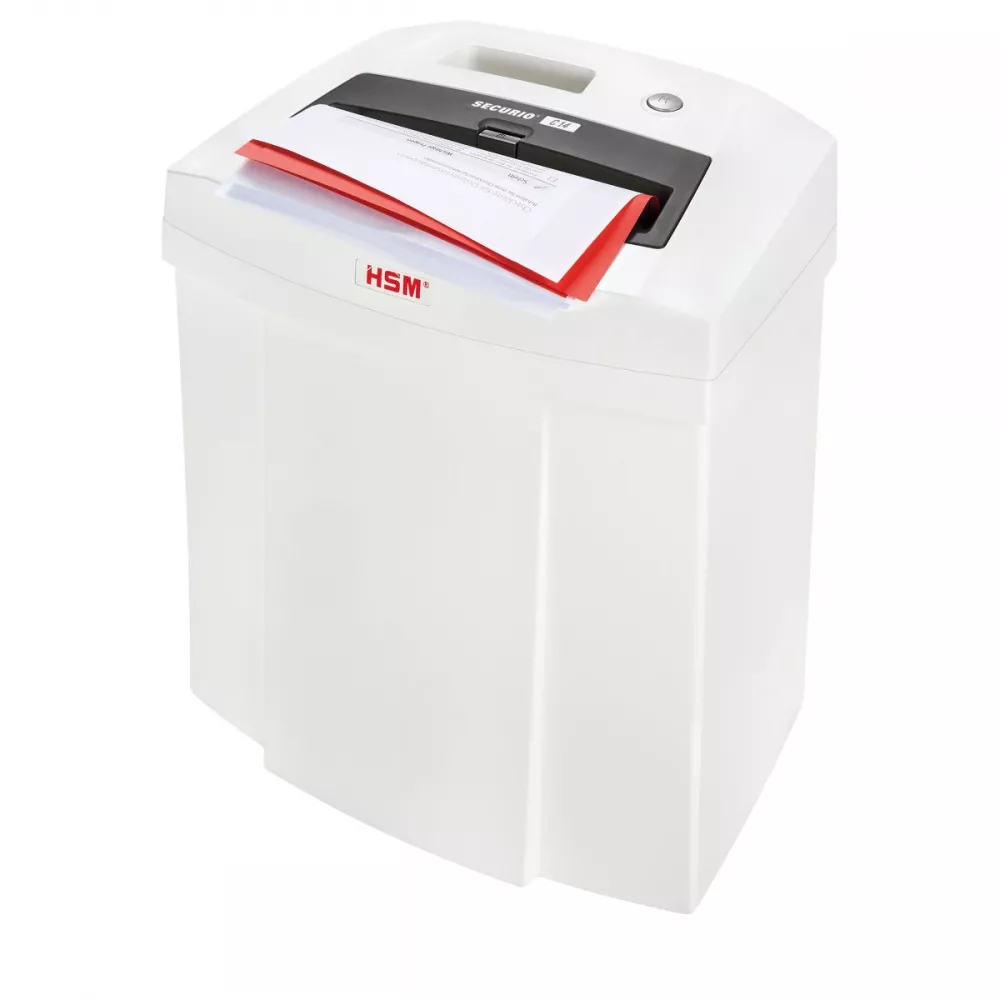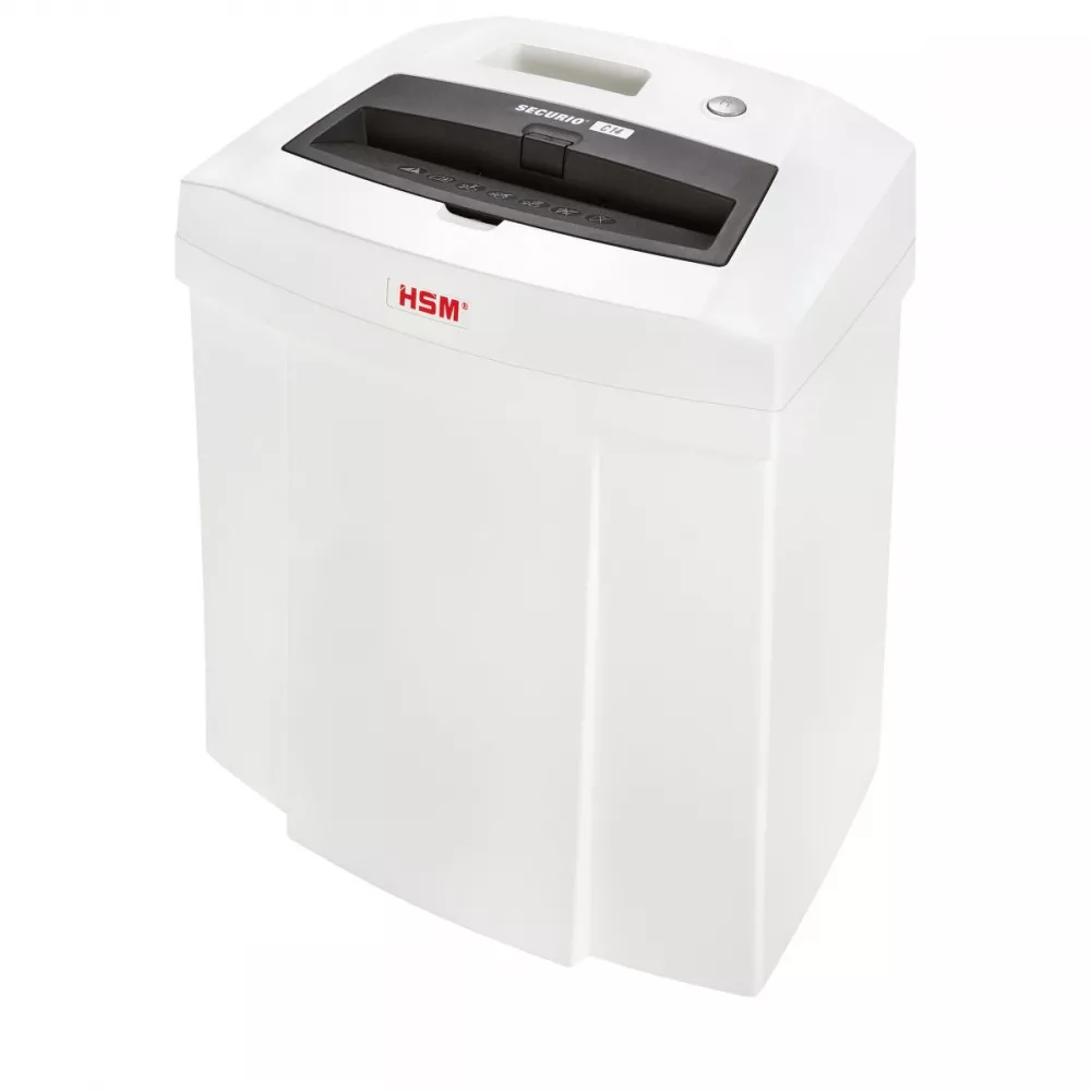Уничтожитель бумаги, шредер HSM Securio C14 (4x25). Перекрестная резка: 4х25мм; Уровень секретности: 4; Уничтожает за раз: 7 листов; Ширина реза: 220мм; Уничтожает пластиковые карточки; Объем корзины: 20л; Габариты: 366x258x405мм; HSM, Германия