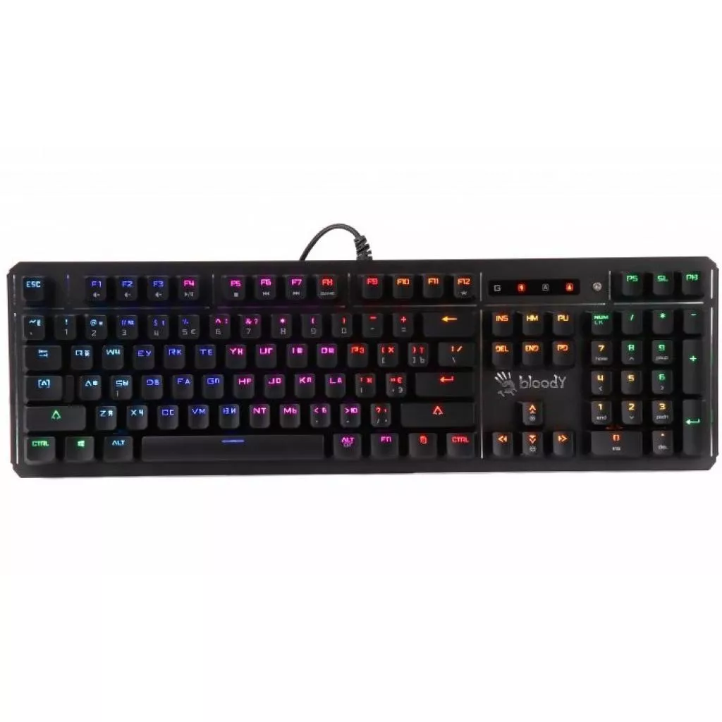 Клавиатура A4tech Bloody B975 RGB Black— игровая клавиатура Light Strike с RGB-подсветкой. Самый быстрый в мире механический переключатель! Инновационная технология Light Strike использует оптические переключатели, обеспечивающие непревзойденное время отклика 0.2 мс! Оптический переключатель обладает высокой долговечностью, ультрапрочностью и износостойкостью, что делает его привлекательным для геймеров.