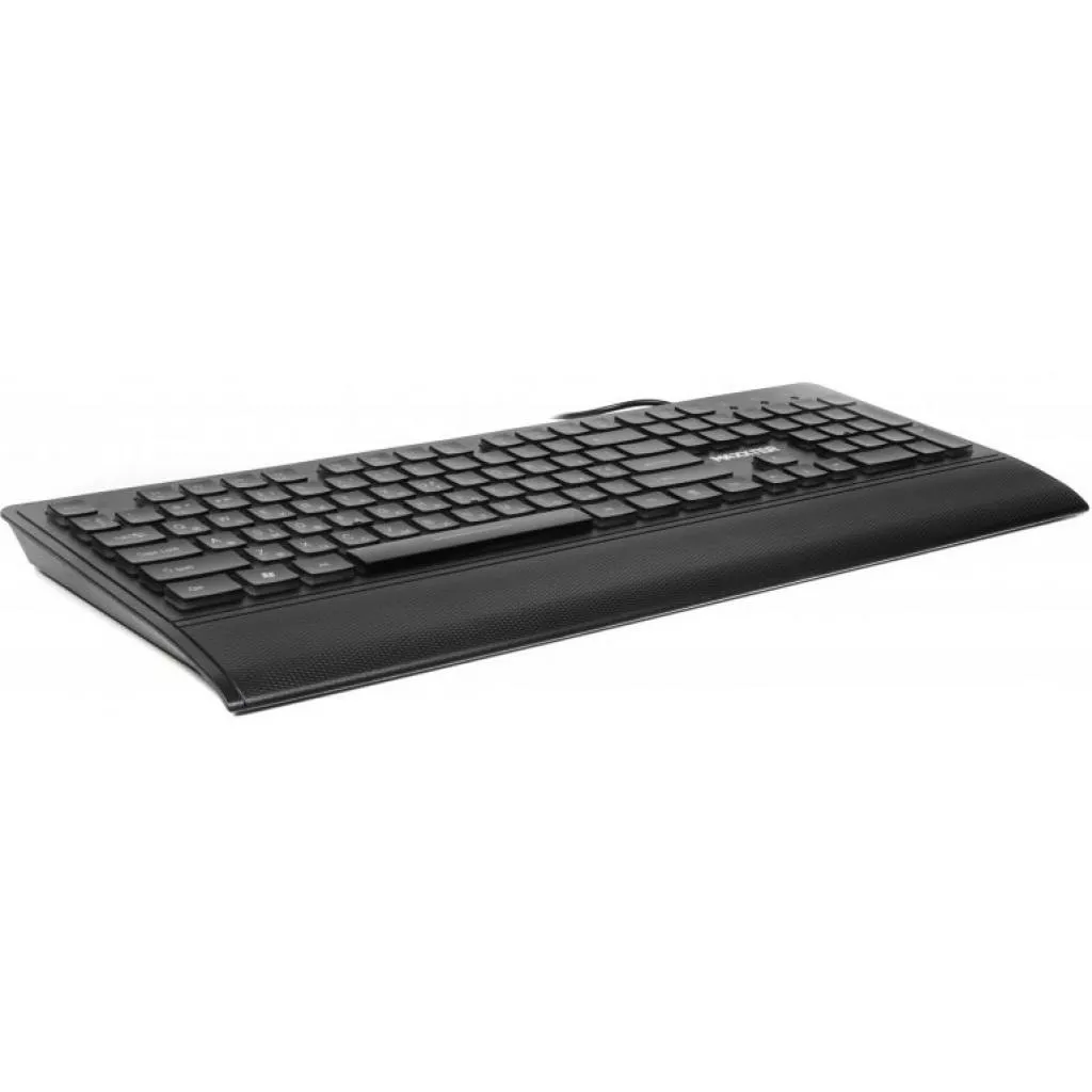 Полноразмерная клавиатура. Светодиодная подсветка символов позволяет с комфортом работать при любом освещении. Подсветку можно включить/отключить. 12 дополнительных клавиш для быстрого доступа к офисным и мультимедийным приложениям. Низкопрофильные клавиши имеют короткий и мягкий ход. Угол наклона клавиатуры можно отрегулировать с помощью выдвижных ножек.