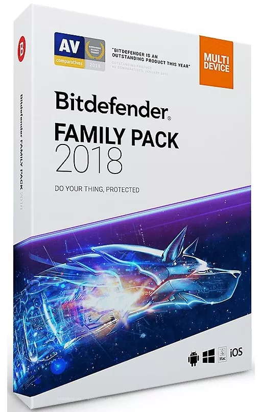 Антивирус Bitdefender Family pack 2018, *Unlimited, 1 year (WB11151000) гарантирует тотальную защиту для устройств Windows, Mac ОС и Android, приватность с Webcam Protection, многоуровневую защиту от ransomware угроз.