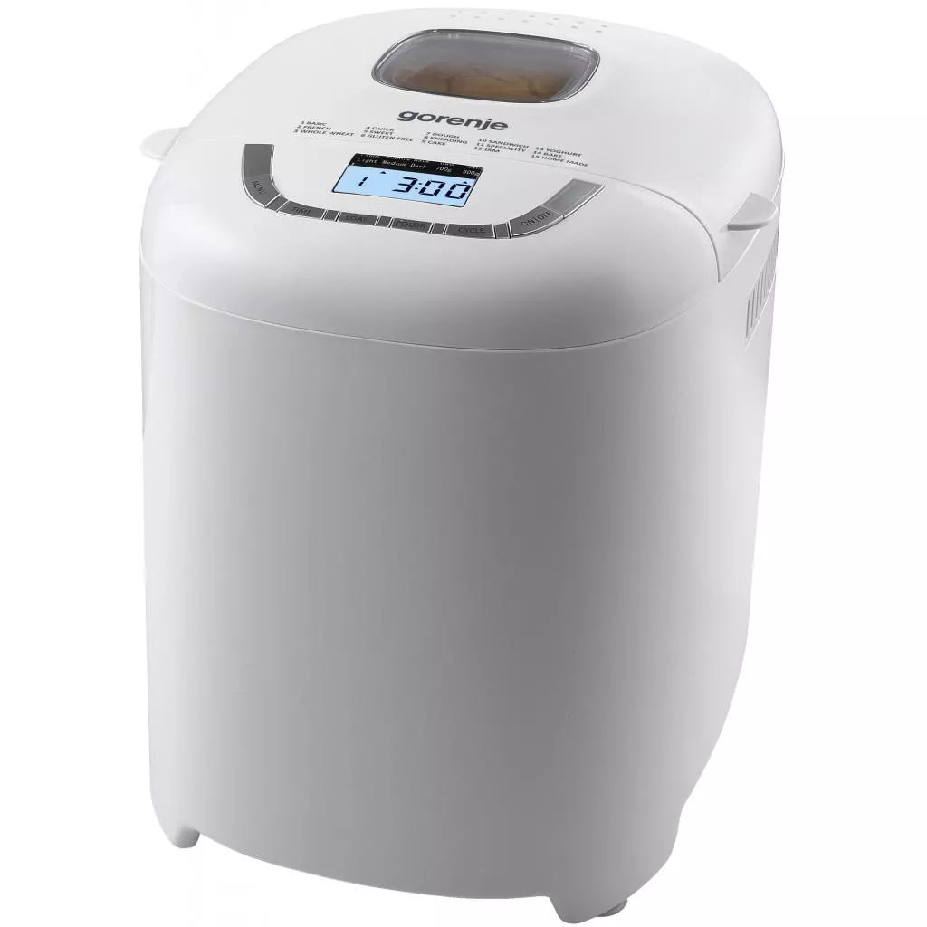 15 автоматических программ. Хлебопечка Gorenje BM 910 W II имеет 15 встроенных программ выпечки, в том числе быстрая выпечка, безглютеновая выпечка, программа поднятия теста, а также приготовление домашнего йогурта и джема. Также предусмотрена возможность замешивания теста.