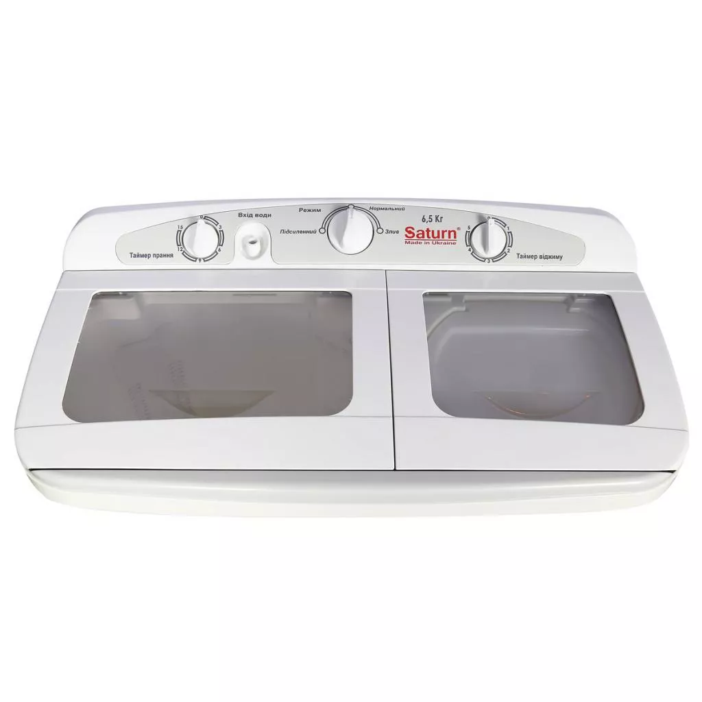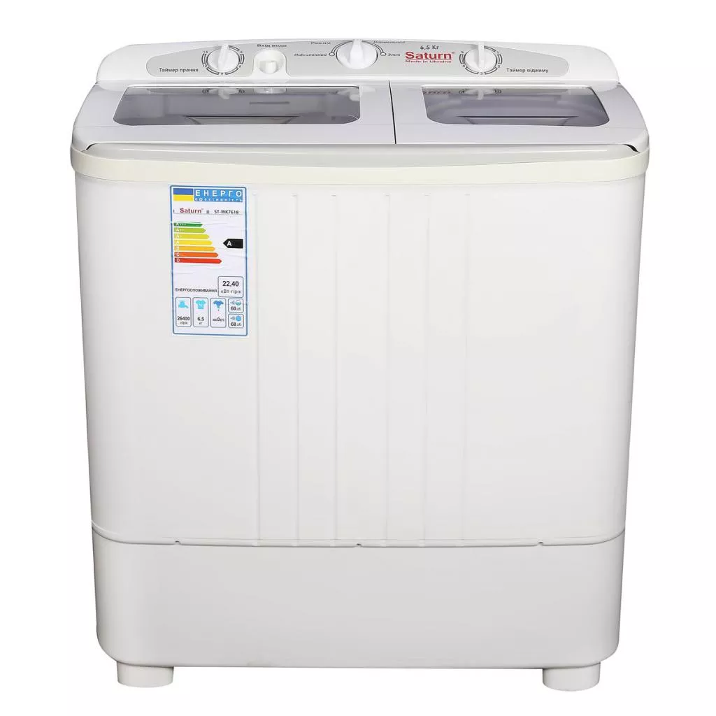 Также имеется помпа для откачки воды, которая откачивают всю грязную воду. SATURN ST-WK7618 white умеет работать в двух режимах: режим полоскания и режим стирки. Управление осуществляется механическими регуляторами, например установка таймера стирки и таймера центрифуги. Важным преимуществом является тот момент, что способ загрузки в такой машине вертикальный. Вам будет удобнее загрузить все белье в это машину без приседаний и нагибаний.