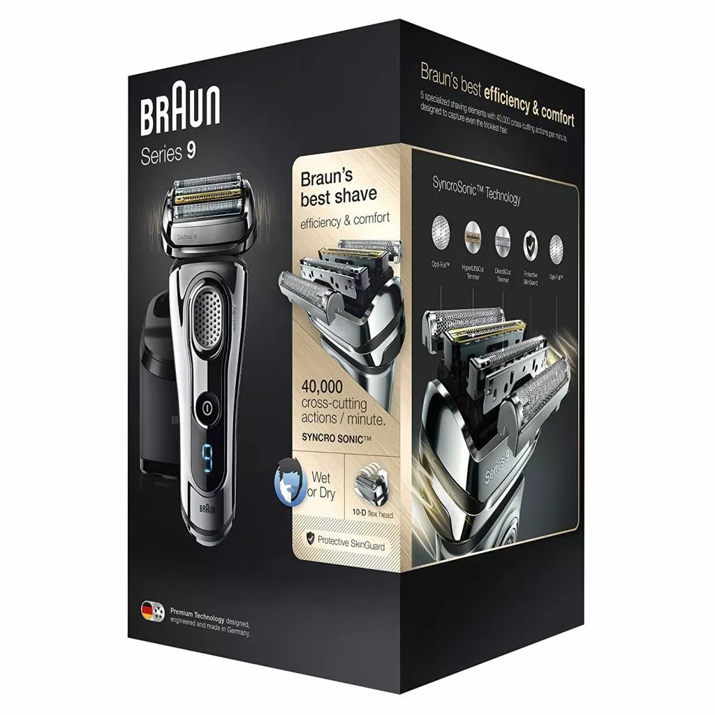 Флагманская модель линейки электробритв Braun 9295cc Series 9. Представляет собой премиум сегмент, поддерживает технологию позволяющую бриться как с пеной, так и без неё - “на сухую”. Конструкция корпуса выполнена из водонепроницаемых элементов, что позволяет использовать устройство даже в душе. Современный прибор оснащен дополнительным выдвижным триммером, для подравнивания усов, бороды, бакенбард. Аккумулятор с увеличенной ёмкостью даёт возможность автономного бритья до 50 минут, заряжаясь при этом всего за 1 час. Эргономичная прорезиненная ручка удобна и не проскальзывает в руке.