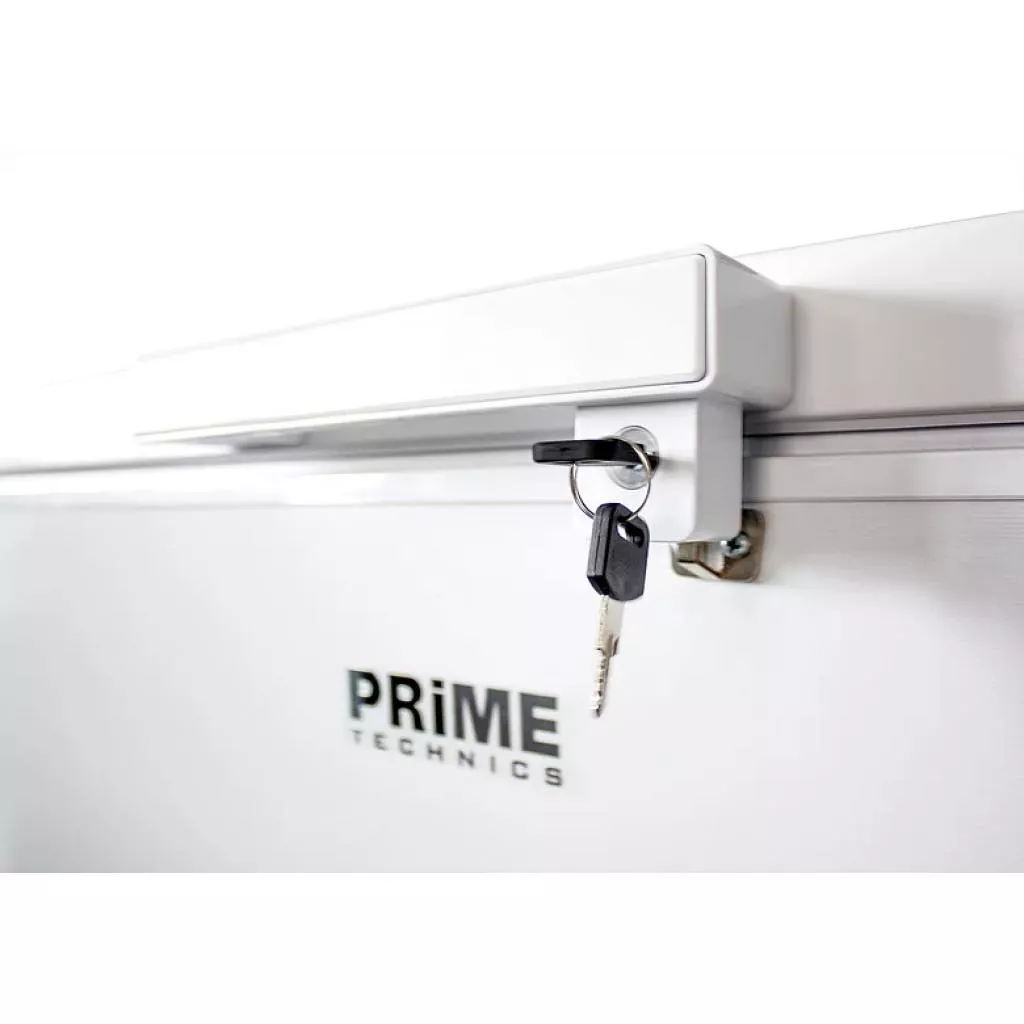 Внешность морозильной камеры Prime Technics CS 1511 E соответствует понятиям о минималистичном классическом дизайне устройств представленной категории: прямоугольная форма, белый цвет, отсутствие ярких выразительных деталей. Крышка ларя оснащена ручкой для более удобного открывания. Также на ней имеется замок, которым можно закрыть технику на ключ.