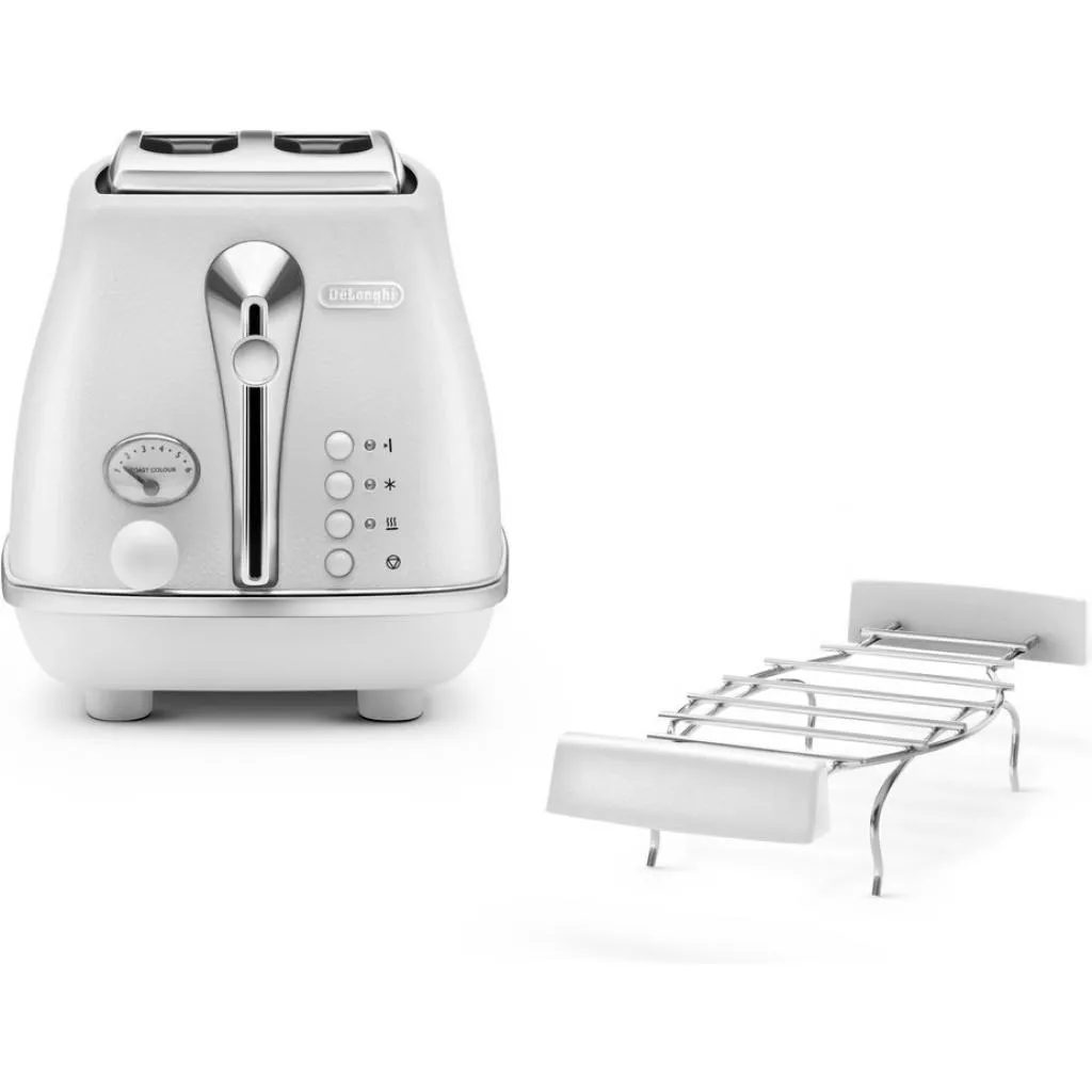 Уход за прибором не составит труда. Поддон сделан выдвижным, чтобы вы смогли легко извлечь хлебные крошки. Тостер имеет прорезиненные ножки, которые обеспечивают нескользящее основание. DeLonghi Icona Vintage CTOV 2103 выполнен в оригинальном винтажном стиле. Такое устройство станет ярким акцентом на вашей кухне.